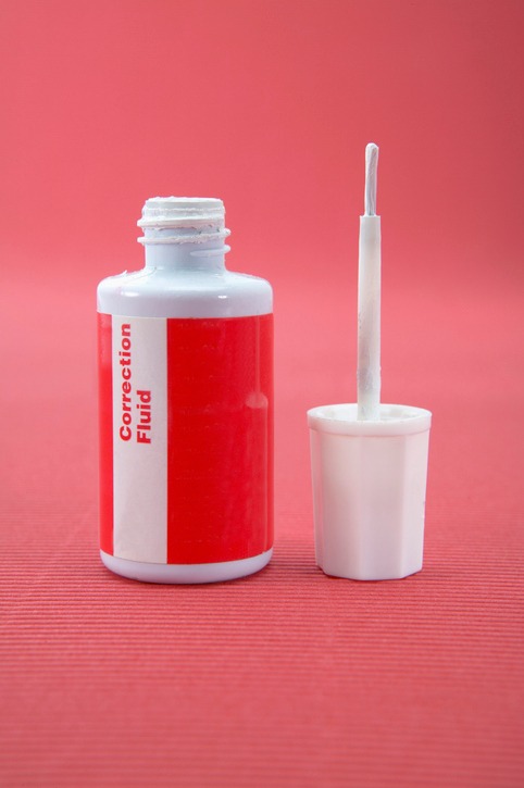 [image description: a picture of a whitening fluid with a label that reads “correction fluid” ]