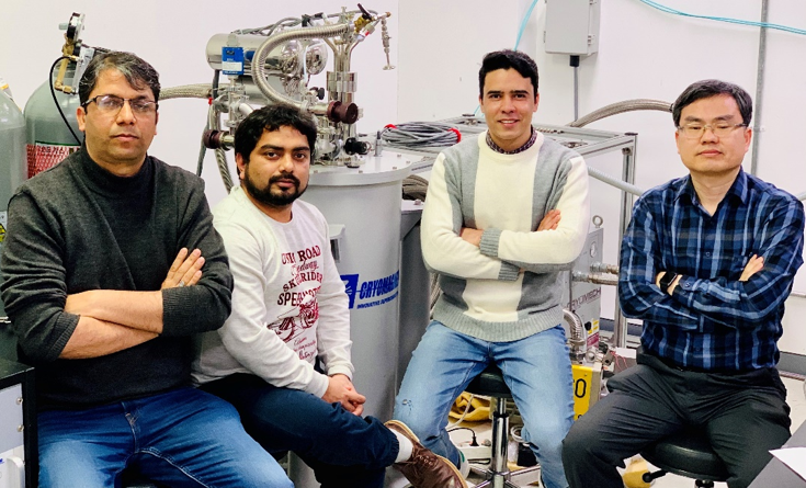 Right to left: Prof. Changgu Lee (Group leader), Dr. Yasir Hassan, Dr. Pawan Srivastava and Dr. Budhi Singh at Graphene Engineering Laboratory, School of Mechanical Engineering, Sungkyunkwan University.