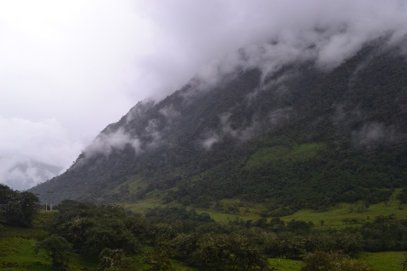 Located 1200 - 3200 metres above sea level and separating the high elevation grasslands, or páramo, of the Andes from the tropical rain forest of the Amazon, the montane cloud forests of the eastern Andean flank of Ecuador are some of the most biodiverse yet at risk forests on the planet. Steep slopes covered in dense forest and moisture loving plants are shrouded in cloud, generated as warm air from the southern Atlantic cools as it ascends up slope. However, much of the more accessible areas have been cleared for cultivation and cattle farming, and continual deforestation has led to an increase in landslides and fires.