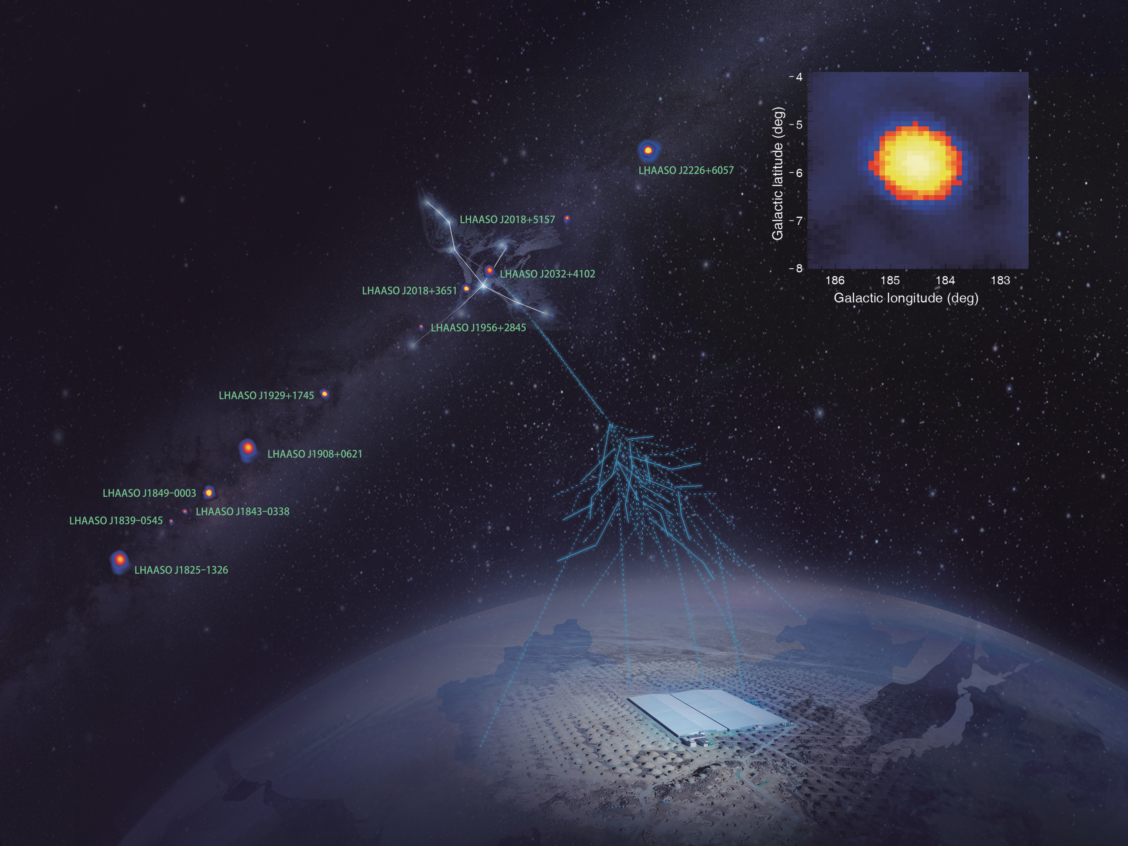 China's Large High Altitude Air Shower Observatory (LHAASO)—one of the country's key national science and technology infrastructure facilities—has found a dozen ultra-high-energy (UHE) cosmic accelerators within the Milky Way. It has also detected photons with energies exceeding 1 peta-electron-volt (quadrillion electron-volts or PeV), including one at 1.4 PeV. The latter is the highest energy photon ever observed. These findings overturn our traditional understanding of the Milky Way and open up an era of UHE gamma astronomy. These observations will prompt us to rethink the mechanism by which high-energy particles are generated and propagated in the Milky Way. In addition, these observations will encourage us to explore more deeply violent celestial phenomena and their physical processes as well as test basic physical laws under extreme conditions. These discoveries are published in the journal Nature on May 17 (https://www.nature.com/articles/s41586-021-03498-z ). .jpg)