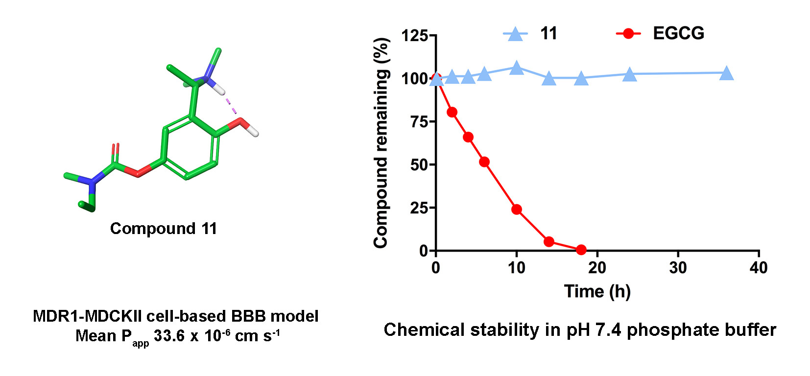 The possible oxidation of polyphenols to potentially toxic quinones is often overlooked in bioactivity studies but deserves serious attention. The rivastigmine analogues described in our study are apparently protected from oxidation and therefore offer an opportunity for the brain delivery of an intact polyphenolic pharmacophore, as well as the investigation of its toxicity and of its effect on AD pathology in vivo. We are keen to follow-up on this aspect in model organisms with interested collaborators. We’ve also filed a provisional patent application to encourage further investment in these compounds, which have the potential to inhibit the progression of AD, among other properties yet to be published.