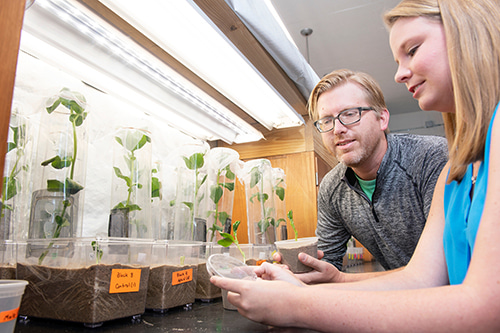 Testing the direct effects of AC/DC on fava bean (without lady beetles or aphids) (Photo by Brandon Barton)