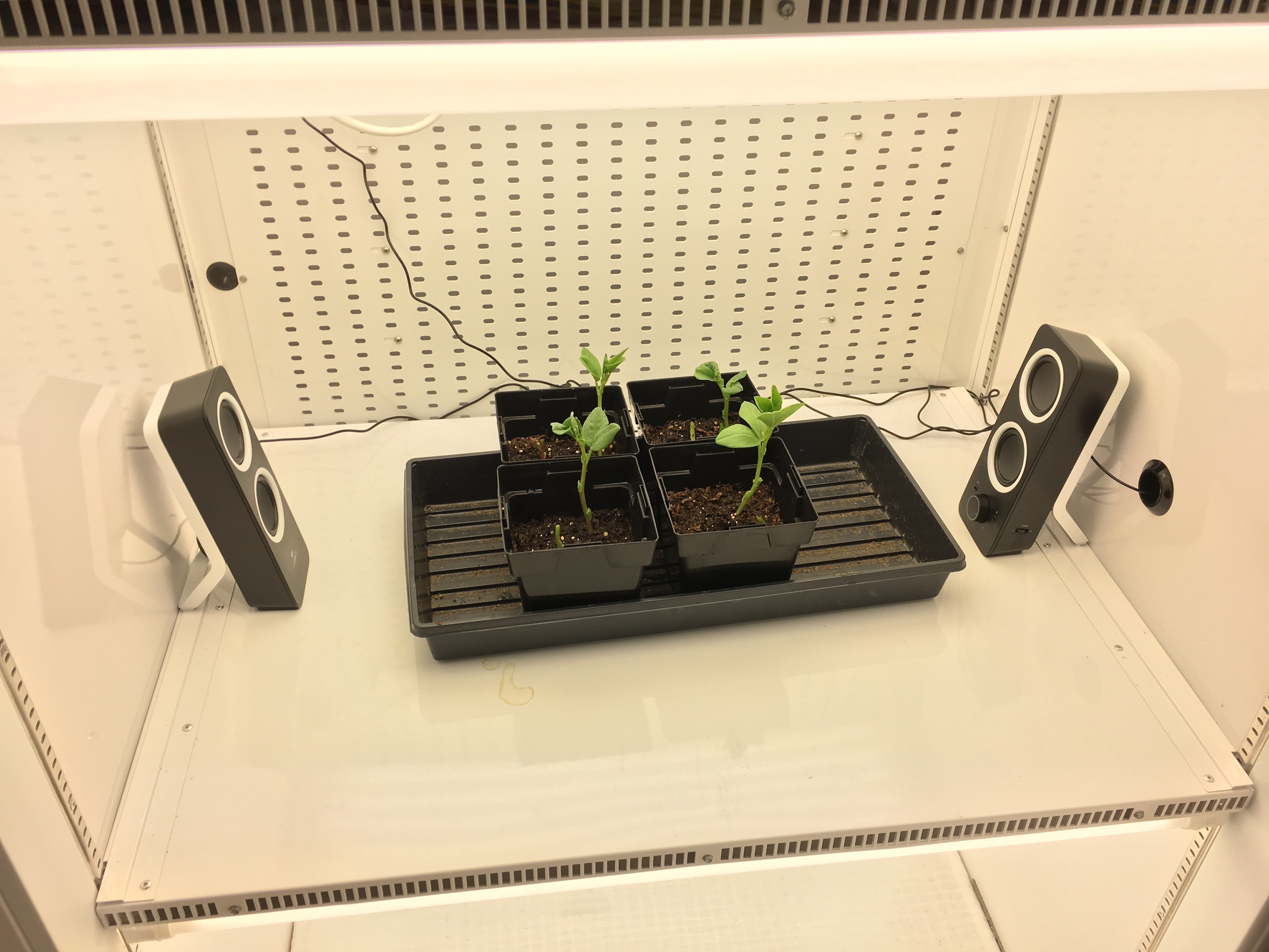 Demonstrating that noise can reduce predation rates was interesting, but we also wanted to test for indirect effects on aphids and plants. To do this, we played the Back in Black album nonstop for two weeks and then counted aphids and weighed plants. As predicted, we found that lady beetles exposed to AC/DC did a poor job at controlling herbivore populations, which were 40x more abundant in sound treatments than controls. Consequently, plant biomass was reduced in sound treatments: AC/DC had indirectly affected plants by disrupting biological control of aphids by lady beetles.