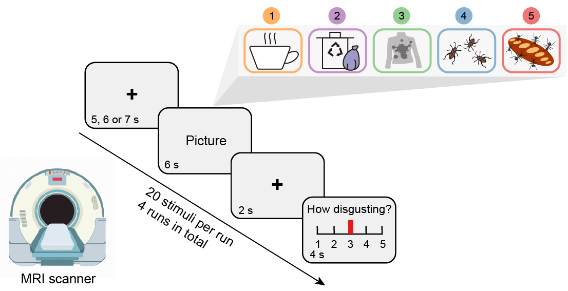 Figure 1. fMRI disgust induction paradigm. Of note, schematic figures were used for display purpose and were not included in the original stimulus set.