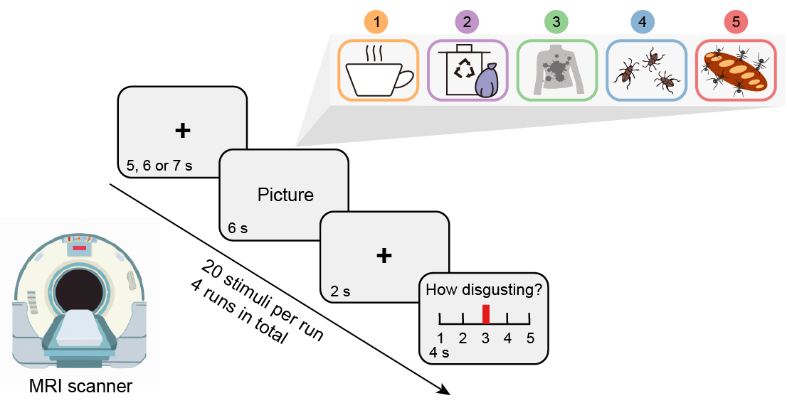 Figure 1. fMRI disgust induction paradigm. Of note, schematic figures were used for display purpose and were not included in the original stimulus set.