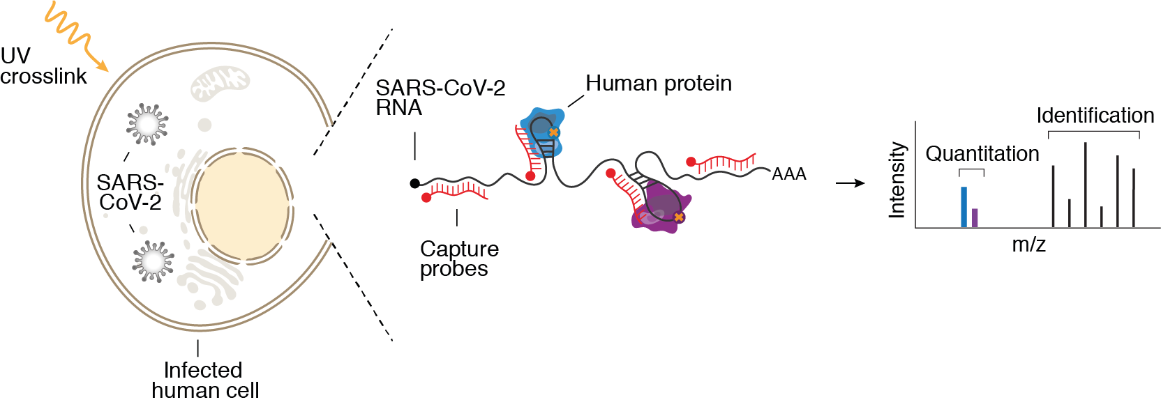 This project quickly became the center of our attention. We had successfully used the pivotal RAP-MS technology (Figure 1) a number of times and had worked out best practices to coordinate mass spectrometry analyses with our friends at the Broad Institute. Pilot experiments looked promising and a few experimental tweaks later, we caught the first glimpse of the proteins that directly bind to SARS-CoV-2 RNA.