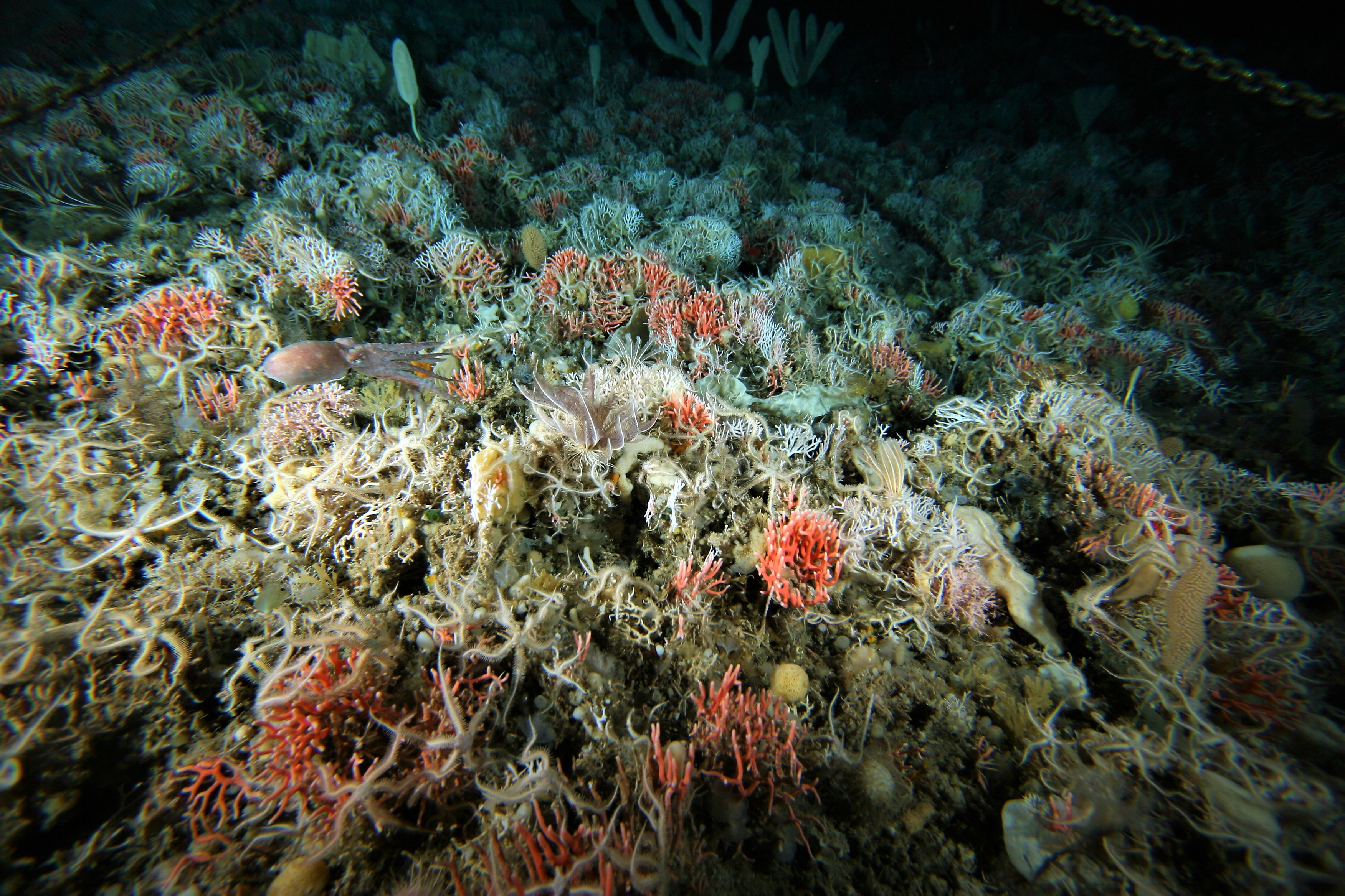 Like many others, I’ve associated highly diverse marine communities mainly with tropical coral reefs, and was totally oblivious to the phenomenal diversity of seafloor communities in Antarctica. I was stunned, that such a diverse community would exist at hundreds of meters depth, in an area with literally freezing water temperatures. This image, and the one further below were captured with cameras towed behind the Australian icebreaker Aurora Australis. Photo: Australian Antarctic Division