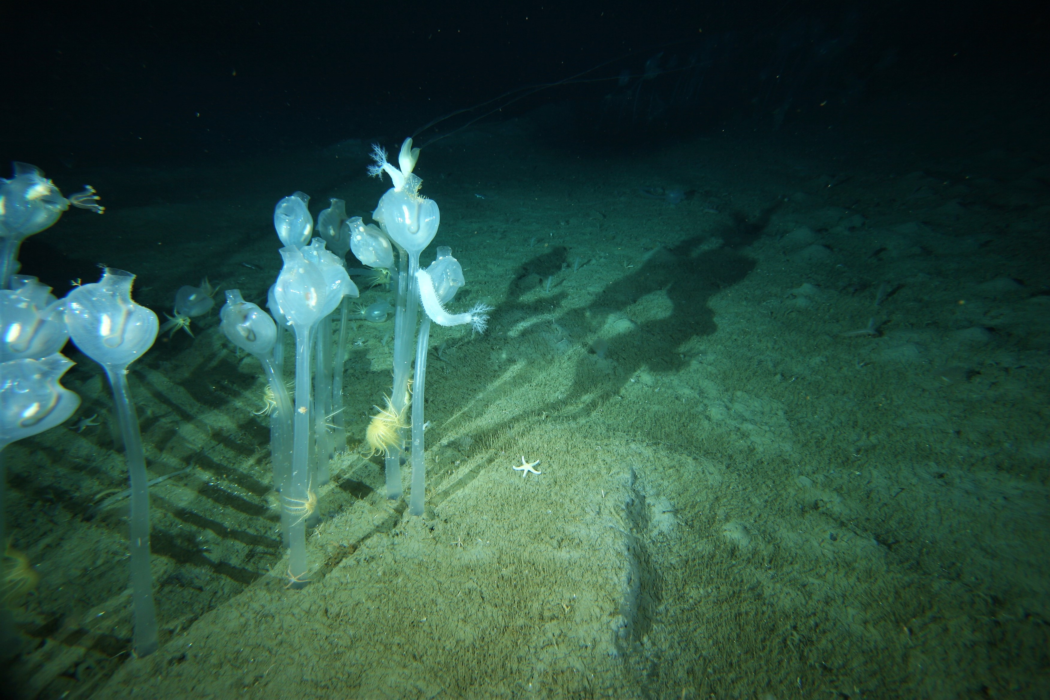 There are many more incredibly beautiful communities out there around the Antarctic, yet we still know so little about them. Antarctica is a hard place to get to, and sampling the seafloor is both time-consuming and expensive. This image shows an assemblage of solitary sea-squirts (ascidians). Their height provides a platform for other filter-feeding animals such as sea-cucumbers, feather stars and a comb jelly. Photo: Jonny Stark/Australian Antarctic Division