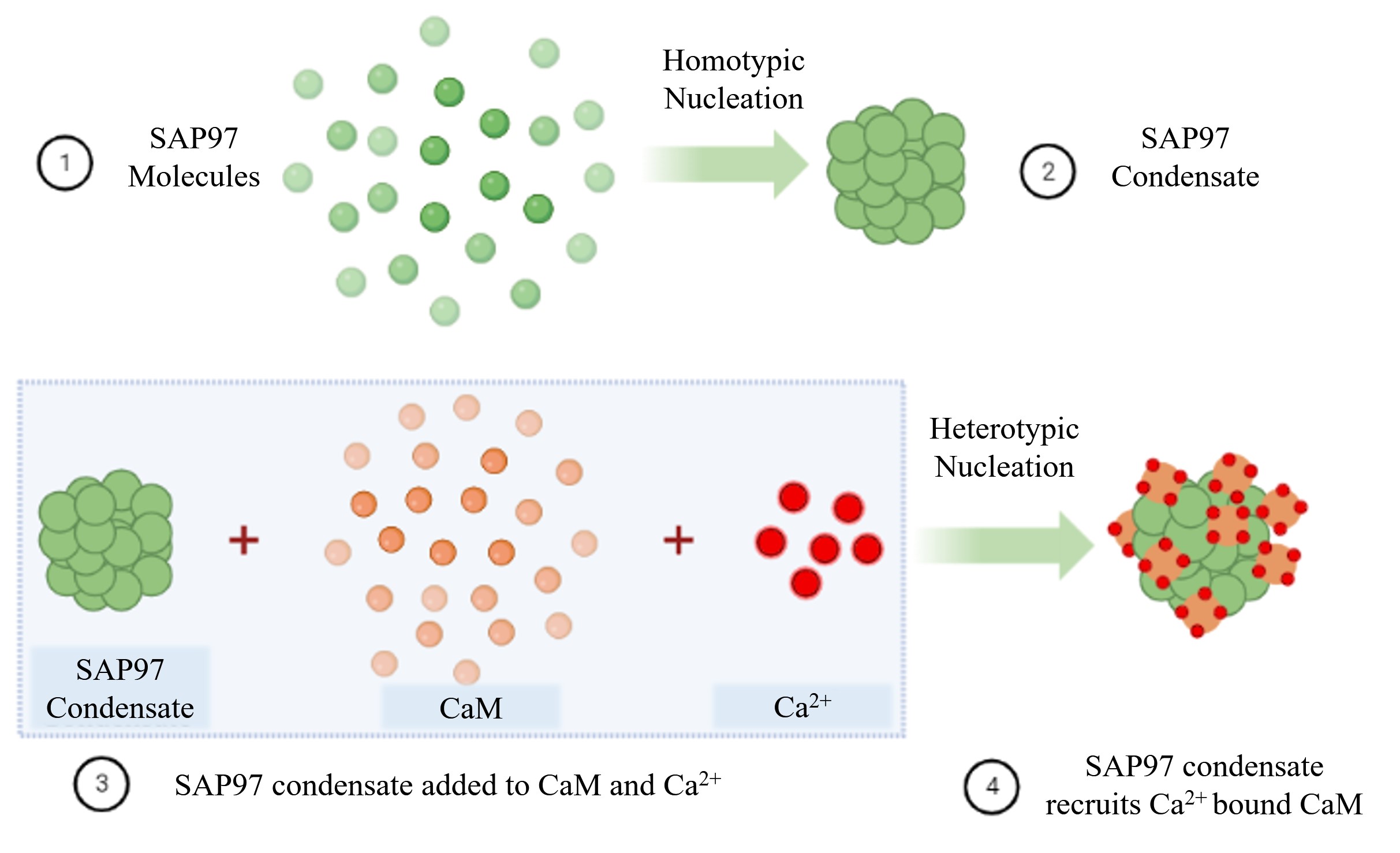 This study from our lab explores the intricacies involved in the phase separation of molecules and complex signalling mechanisms at nano-micron scales in cellular systems and in solution. The observation of SAP97 nano condensates can contribute to regulation of reserve pool of glutamatergic receptor islands in proximity to the PSD and influence an activity dependent molecular tuning through local availability of Calcium and Calcium binding proteins. Understanding the interplay of these biomolecules and their complexities at nanoscale will aid us in understanding how self-organization contribute to heterogeneity in synaptic responses resulting in altered cognition in health and disease.
