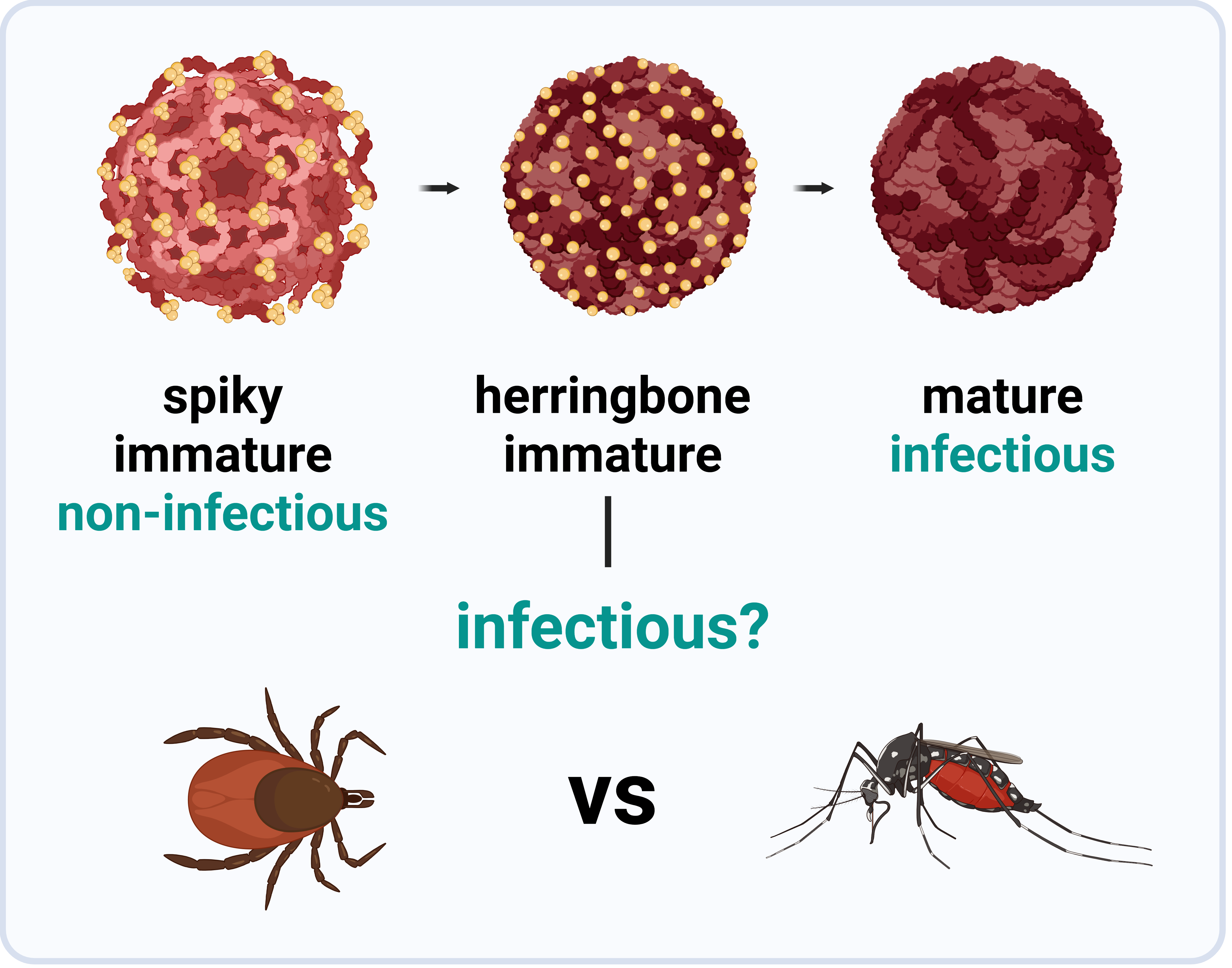 This is how our story began – with tick-borne encephalitis virus (TBEV), a flavivirus from the same family as the more famous dengue, Zika, and West Nile viruses. These viruses share many features: they are small (around 50 nm in diameter), spherical, and enveloped, with a surface composed of two main structural proteins – envelope (E) and membrane (prM/M). These proteins form beautiful, icosahedrally symmetrical mosaics, giving flaviviruses a dangerous elegance. But while they look similar, some flaviviruses are spread by mosquitoes (like Zika and dengue), and others by ticks (like TBEV and its close relatives). And that raises a fascinating question: why are these viruses so vector-specific? Why can’t a mosquito-borne flavivirus infect ticks, or vice versa? Despite years of research, we still don’t fully understand why. It likely involves a combination of viral and vector-specific factors. But in our newly published Nature Communications study, we uncovered one unexpected difference between these two virus groups – and it all comes down to “immature” virus particles.