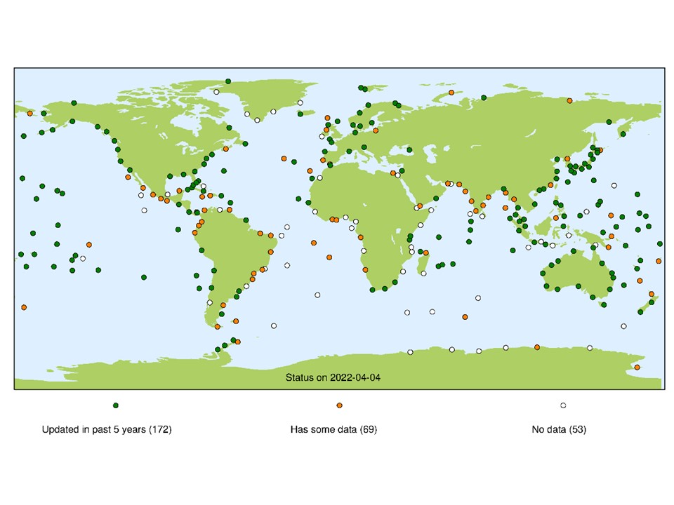 Current status of the in situ tide gauge network (https://www.psmsl.org/products/gloss/status.php)