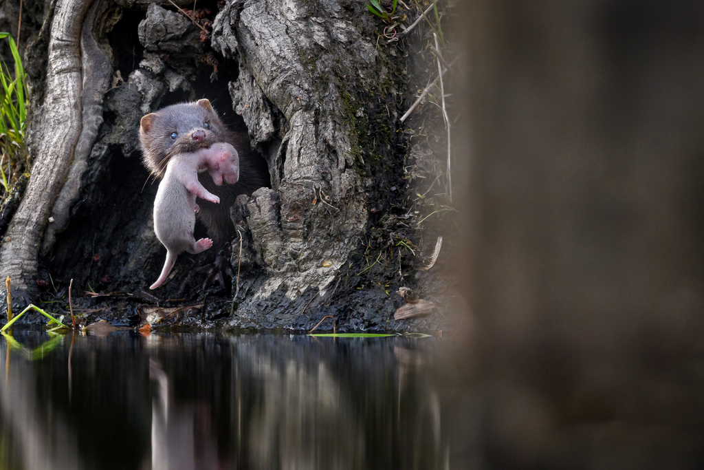 An American mink moving her kits from one den to another. Photo source: https://www.inaturalist.org/observations/45129885