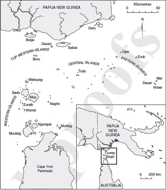 Zeneadth Kes, otherwise known as the Torres Strait Islands, is a semiautonomous region of some 274 islands between the tip of Cape York, Queensland, and the southern coastline of Papua New Guinea. Torres Strait Islanders are seafaring peoples that engaged in the largest maritime economy in Australia. The maritime network consists of entangled yet autonomous islands and mainland communities that engaged in trade, exchange, marriage and warfare. This involved the multilateral movement of various cultural paraphernalia, including ceremony, in north to south and east to west directions across the Strait. Despite this, the region has been variably described as a boundary, bridge, barrier and cultural filter separating Australian “hunter-gatherers” and New Guinea “cultivators”.