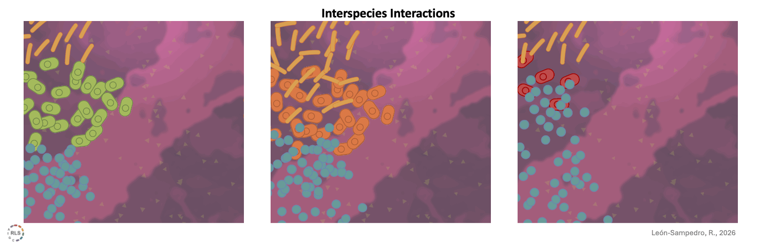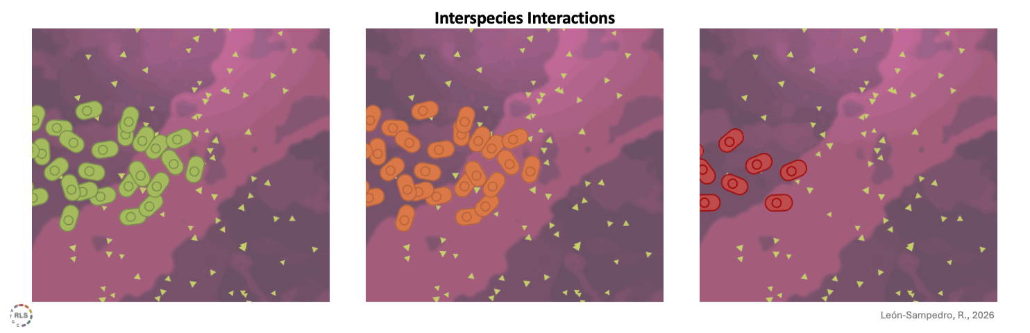 Once the community is taken into account, the fate of the incoming strain is no longer purely individual. Interspecies interactions come into play. Some strains not only grow better than others, but also reshape the microbiome around them. They shift abundances, displace taxa, and alter local equilibria. Others grow almost unnoticed.