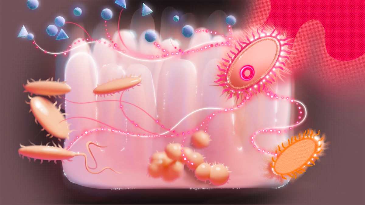 Visualising strain invasion across ecological layers in the gut microbiome. This illustration captures the multi-layered interactions shaping strain establishment within complex microbial communities. Both this image and the cover artwork were designed for this project by @Helena Klein (illuzation), Visual Science Communicator.