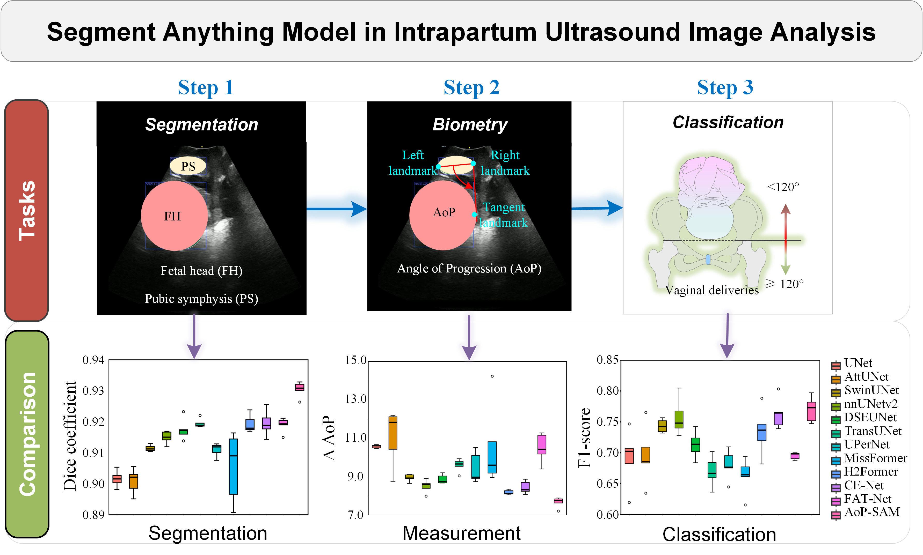 - Zhou Z, Lu Y, Bai J, et al. Segment Anything Model for fetal head-pubic symphysis segmentation in intrapartum ultrasound image analysis[J]. Expert Systems with Applications, 2024: 125699.