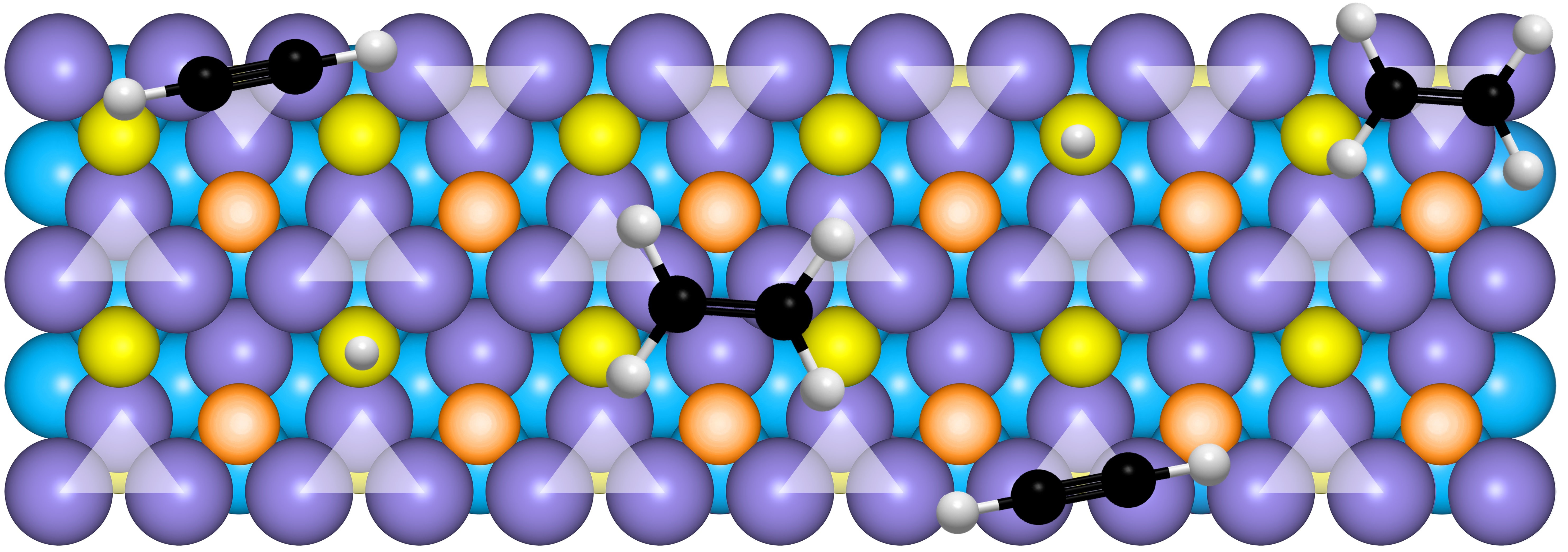 To act as efficient catalysts, it is now well known that surface atoms should possess specific geometric and electronic properties, that originate highly active and selective sites. Electronic effects can be related to Sabatier’s principle which stated that an intermediate derived from a reactant at the surface must be stable enough to be formed, but not too stable since it has to further transform into the desired product(s), thus, they control activity. Also, geometric effects imply that multiple atoms with a specific arrangement (referred to as ‘ensemble’) are sometimes required to enable adsorption of the reactant(s) and are mainly linked to selectivity. Based on these principles, it is important to have ensembles of palladium atoms (limited to three) throughout the surface.