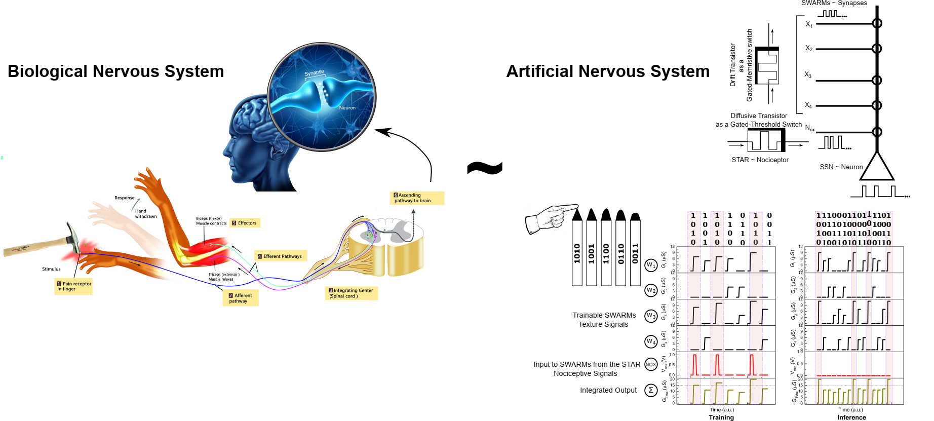 Figure 1. Analogy between biological and our prototypical artificial nervous system