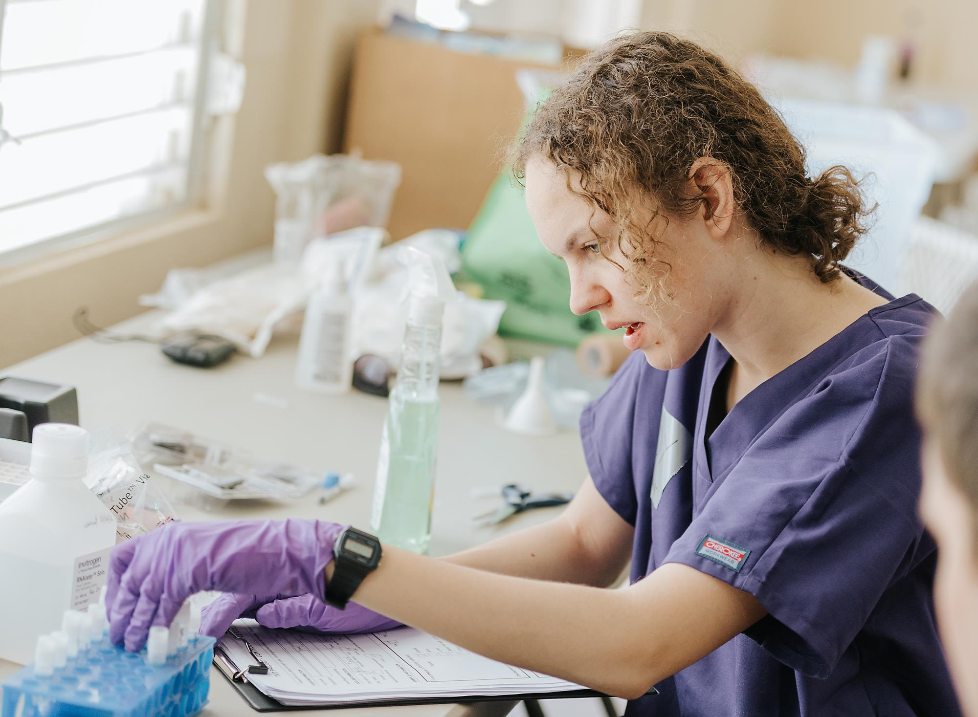 Andrea Strakova collecting canine transmissible venereal tumour (CTVT) samples in Belize. Photo credit: Amanda Thielman.