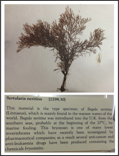 Bugula neritina specimen housed in the Natural History Museum, London. (Photo Credit: Lim-Fong with permission from NHM)
