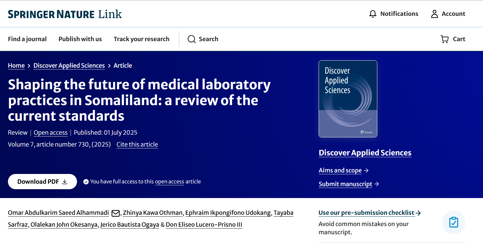 Discover Applied Sciences