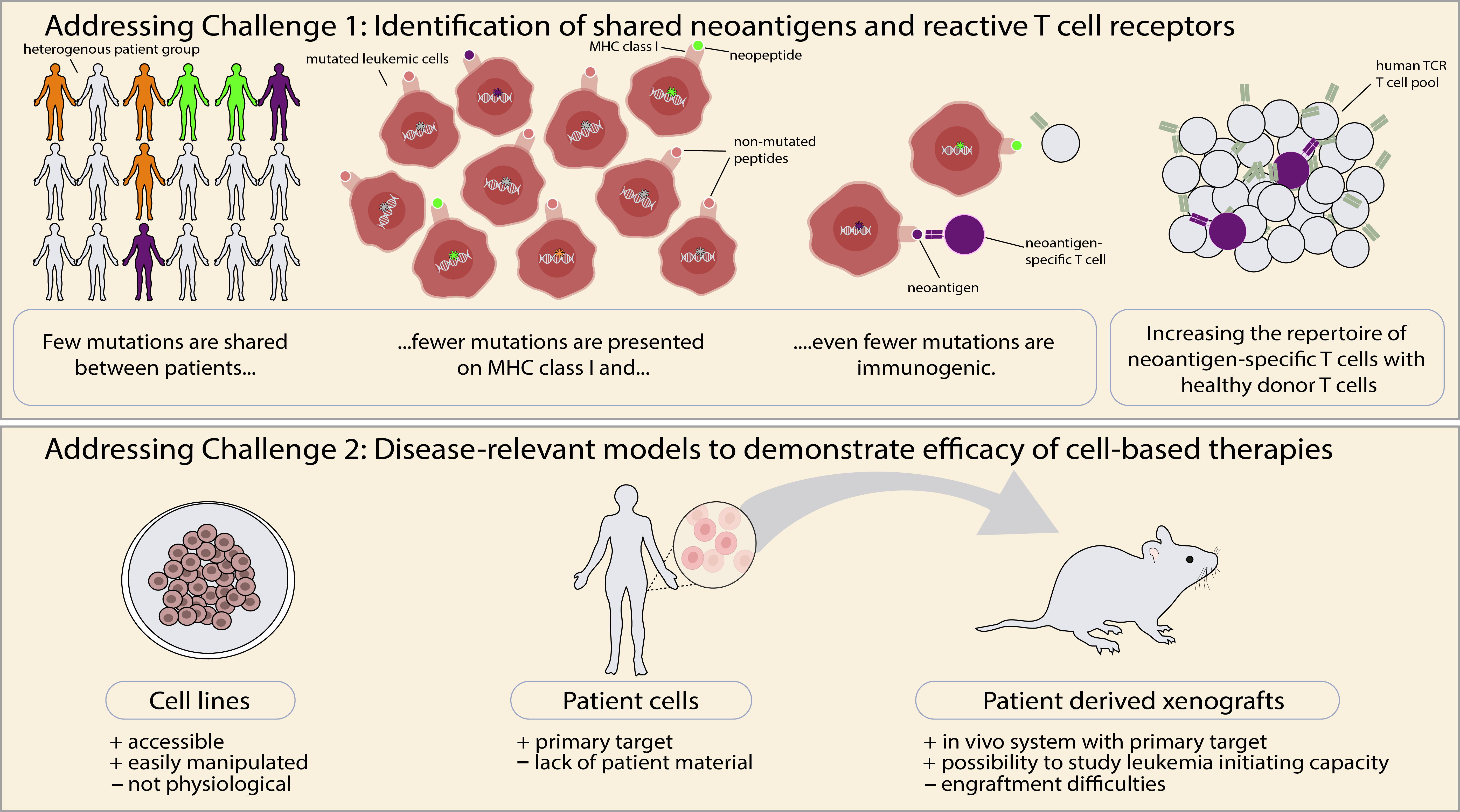 In practice, development of such therapies is challenging for several reasons (Figure 1): First, most mutations in cancer are not shared between patients, but rather unique to the individual cancer patient. Second, many mutations are not presented in the form of mutated peptides on major histocompatibility molecules (MHC) on the surface of cancer cells. Third, among the mutated peptides that are presented on MHC, only a minority is immunogenic, i.e. has the capacity to stimulate T cells. Consequently, finding a TCR that is highly reactive to a shared neoantigen is like finding a needle in a haystack. In general, it has proven difficult to identify patient-derived TCRs that recognize neoantigens with high sensitivity, possibly due to mechanisms of tolerance?