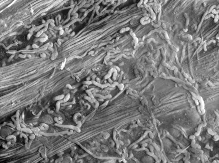 Its development makes for an interesting story. I started with black and white image of a (previously frozen) piece of lamb kidney which I bought at a grocery store (Fig. 1). After dipping it in eosin, a very common histology dye, I recorded my first ever image montage. It was amazing and looked as if it had been taken with a scanning electron microscope. The montage was captured with a dim LED (0.5 mW) on a very slow XY stage and with a 1-megapixel camera. It took about 15 minutes to record all the small individual fields, (we can now do this in 25 s and in color), and assemble them into the montage was like putting together a puzzle. However, the final image was gorgeous, and inspired us to continue this work.