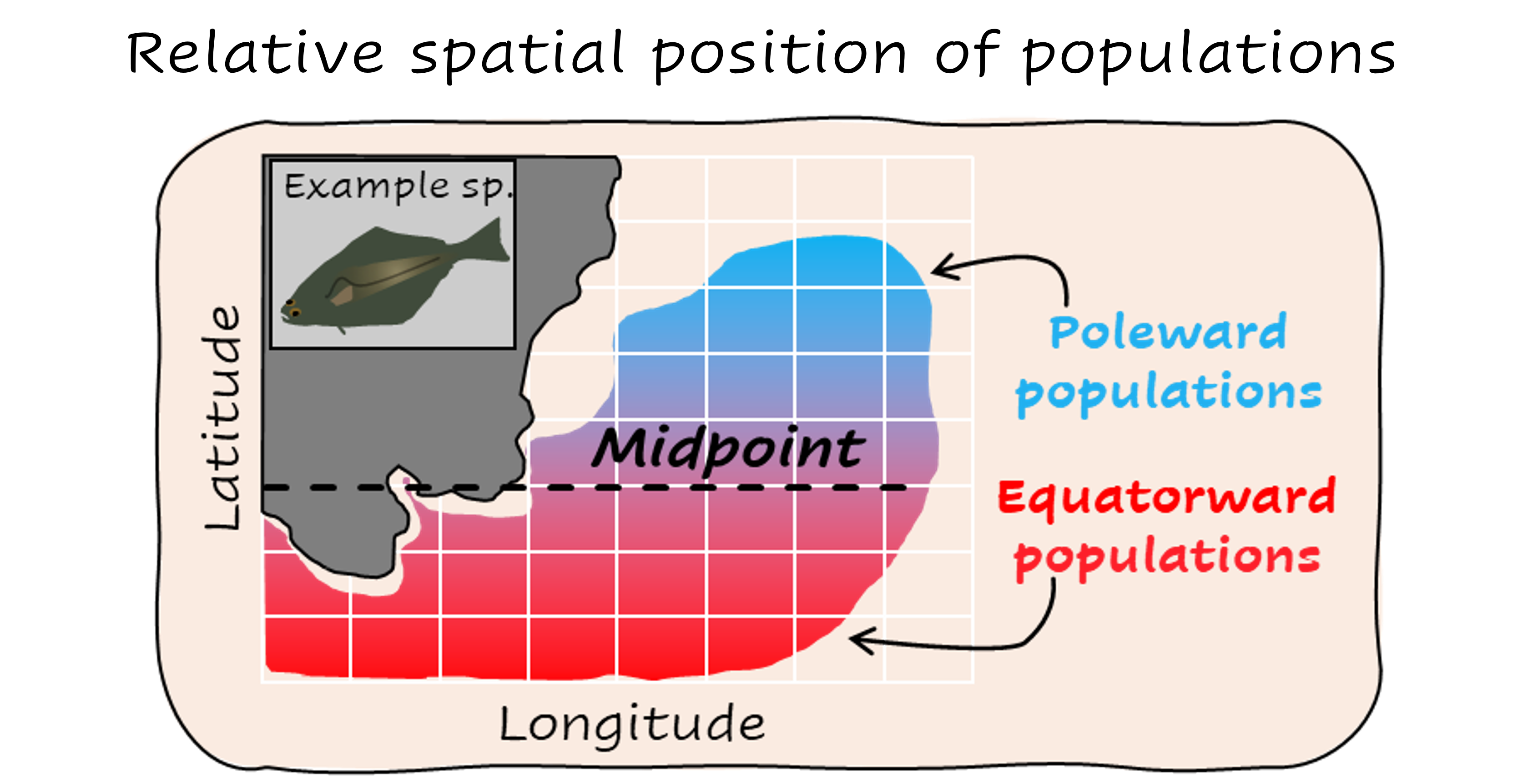 Recent studies show that poleward populations increase in abundance over time while equatorward populations decline.