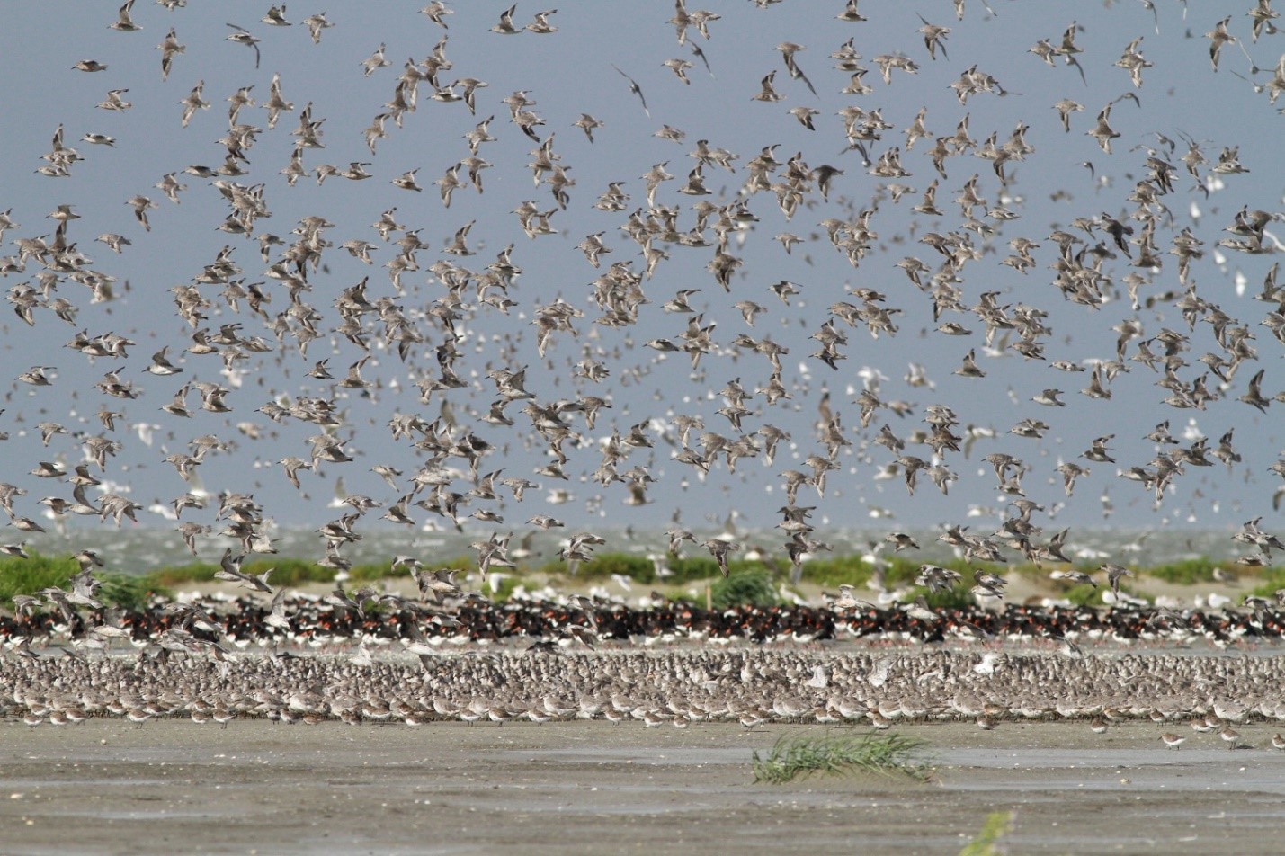 The Wadden Sea, spanning along the coast of the Netherlands, Germany, and Denmark, is a remarkable region in many ways. It is the world’s largest intertidal area, stretching nearly 500 km in length. The shallow coast undergoes massive transformations twice a day with the rise and fall of the tide. When the tide goes out, thousands of hectares of mudflats are exposed, making abundant invertebrates such as shellfish, snails, and worms available as food for millions of birds. When the tide comes in, the area is submerged again, and fish and seals invade the shallows for their daily meals.