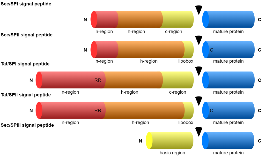 It is well known that signal peptides (SPs) occur in both eukaryotes and prokaryotes. A less well known fact is that there are several types of SPs in prokaryotes (both Bacteria and Archaea). There are two types of translocons (protein translocation channels) and three types of signal peptidases (the enzymes responsible for cleaving the SP from the rest of the protein).
