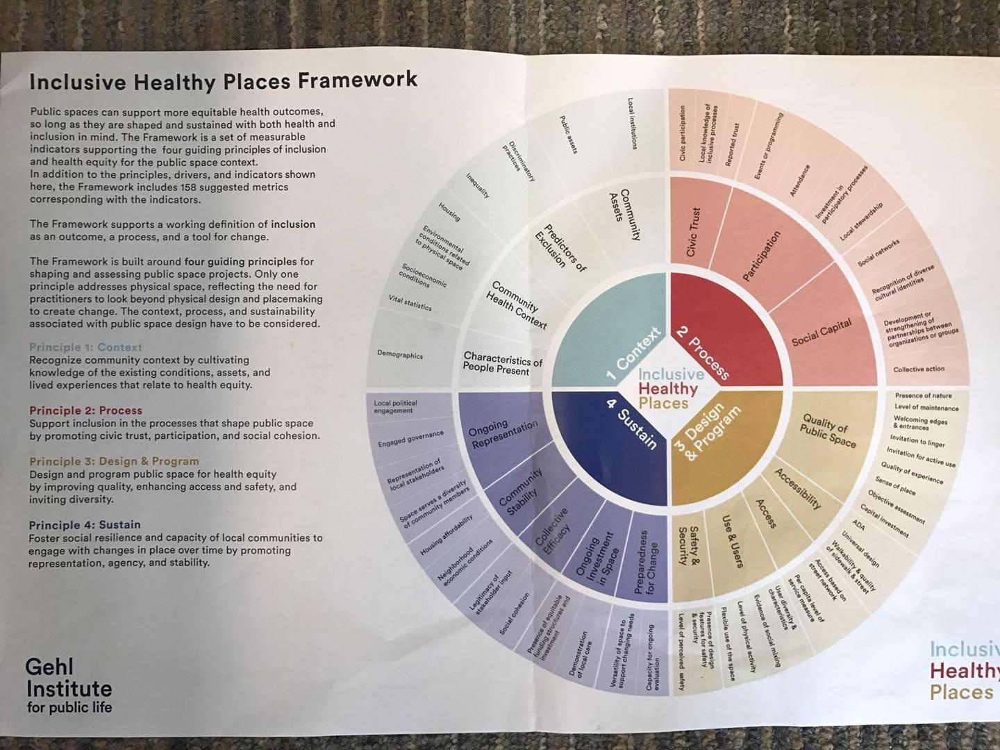 In the session “Healthy Cities – Practical Advice on Inclusion and Health and Space” I had a nice conversation with people from Gehl Institute (Helle Soholt), Novo Nordisk (Bo Wesley) and Robert Wood Johnson Foundation (Sharon Roerty). Their common theme is to help cities develop public open spaces that incorporating human health consideration. In other words, it aims to build open space to be more inviting and accessible through design that also support health and contribute to health equity. Given the role of city space in shaping human health, Helle took Copenhagen as an example to demonstrate its strategy to integrate health in public space. It’s interesting to see that Copenhagen adopts an open space municipal strategy to incrementally connect separate open spaces. Citizens are provided with bicycle account, ‘green wave’ road, kids cycling way and harbour bath that help shape a healthy lifestyle in a way that also improves city capacity and liveability. Jennifer (also from Gehl) introduced their developed framework, called ‘Inclusive Healthy Places Framework’ (see from the photo below). The framework covers community context recognition, public space shape process that supports inclusion, public space design and program, as well as social community capacity development. I quite like the concept of ‘inclusion’ that can be defined as an outcome, a process and a tool. They suggested that scientific communities should be the back-up for their projects. Specifically, Jennifer highlighted a lack of quantitative and quality tool to quantify the benefits of public open space on both physical and mental health.