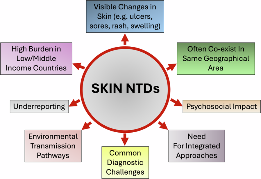 Skin-related diseases are the fourth leading cause of disease burden worldwide, yet a significant subset (the skin neglected tropical diseases (skin NTDs)) remain chronically neglected. An estimated one billion people are at risk of, or are affected by, at least one skin NTD, although the true scale is almost certainly larger given how poorly many of these conditions are captured by existing surveillance networks.