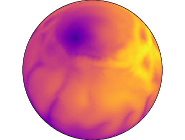 Temperatures at surface of neutron star with pure poloidal magnetic field at age 10 thousand years.