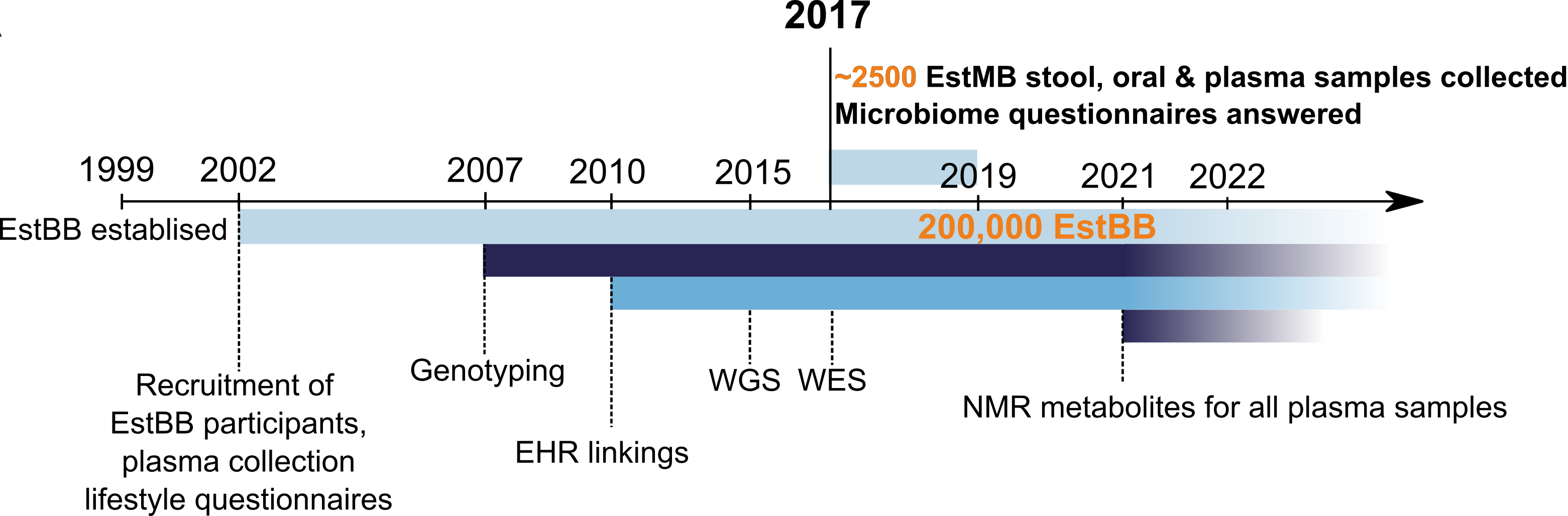 In the study first introducing our project and cohort characteristics, we analyzed the gut microbiome composition in more than 2,500 adults from the EstBB. The project was established in order to study the role of the microbiome in health and disease as well as to evaluate its potential as a means to advance and implement personalized medicine, an ambitious plan for the Estonian healthcare system. EstMB includes stool, oral, and plasma samples and is supplemented with multi-omic measurements, questionnaires covering participants’ dietary preferences, lifestyle choices, and regular linkages to national electronic health records (EHRs). These possibilities allow us to study diseases and medications used in great detail, for example enabling the identification of disease subtypes, disease trajectories, and polypharmacy, which in turn can lead to novel hypotheses.