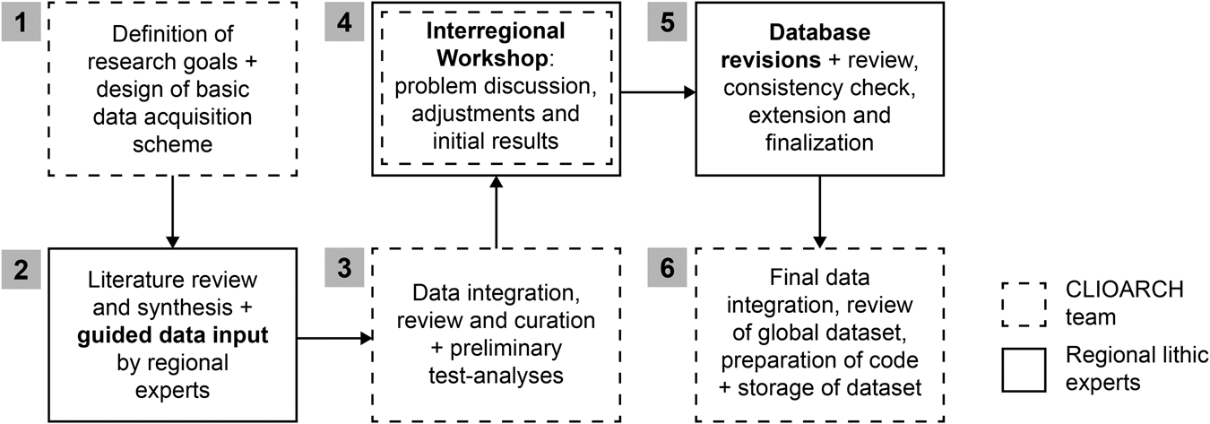 Collective effort Seemingly simple, our workflow demanded much work from both the core team in terms of preparing for data collection, guidance, and interaction, as well as from our expert contributors and co-authors whose input to the database was invaluable. The database now consists of many thousands of artefact images, typological and technological trait data for all cultural units and an extensive literature list that can be directly imported by users into their reference management software of choice.