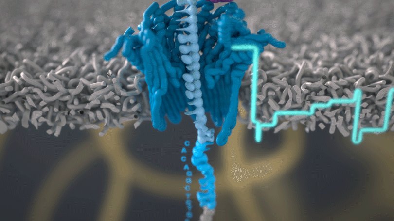 A DNA strand being ejected mid-sequencing via ReadUntil (source: Oxford Nanopore Technologies)