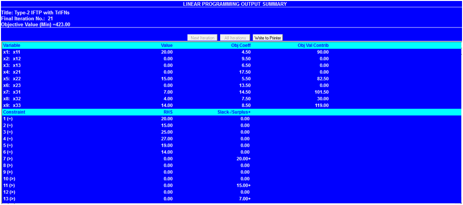 The TORA output summary for type-2 IFTP with TrIFNs is given in Fig. 2.