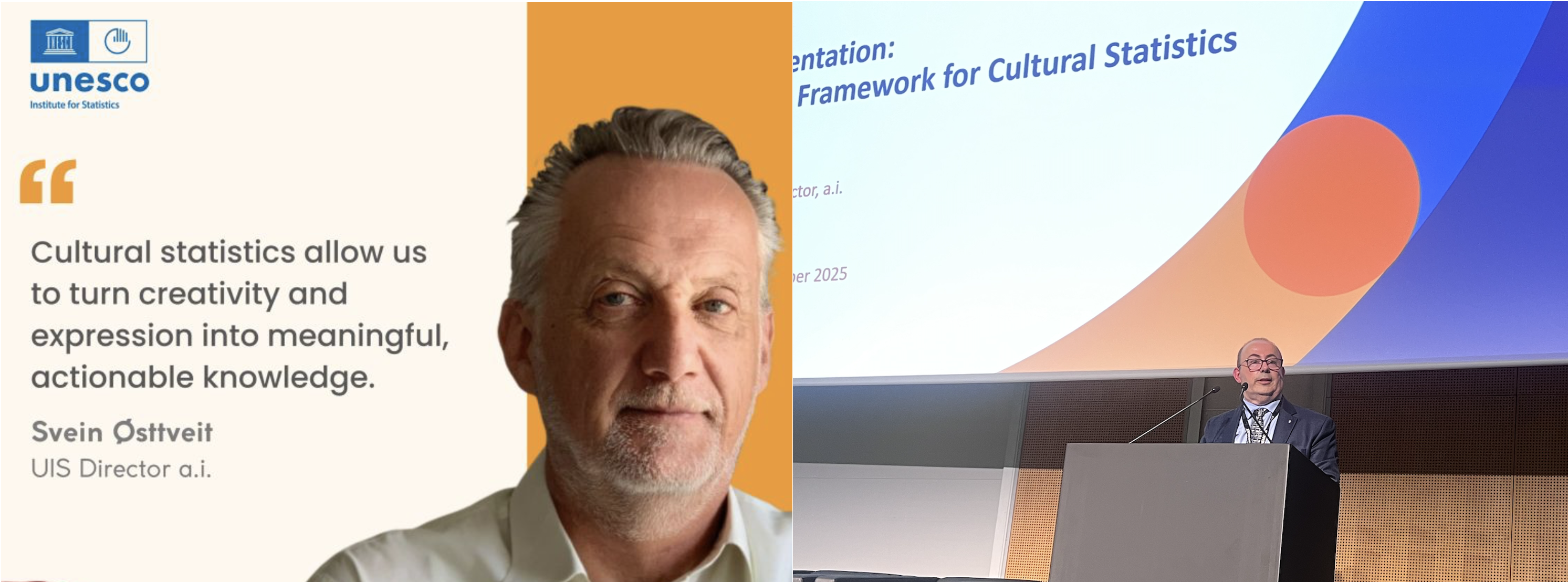 Photo 1 and Photo 2 above:  Launch of the 2025 UNESCO Framework for Cultural Statistics (FCS) at MONDIACULT 2025 (Barcelona, 29 September 2025), featuring a panel discussion introduced by Svein Østtveit and José Pessoa, with Lluís Bonet, Andy C. Pratt,  Elena Raevskikh, Frances C. Koya Vaka’uta, and Ekaterina Travkina.