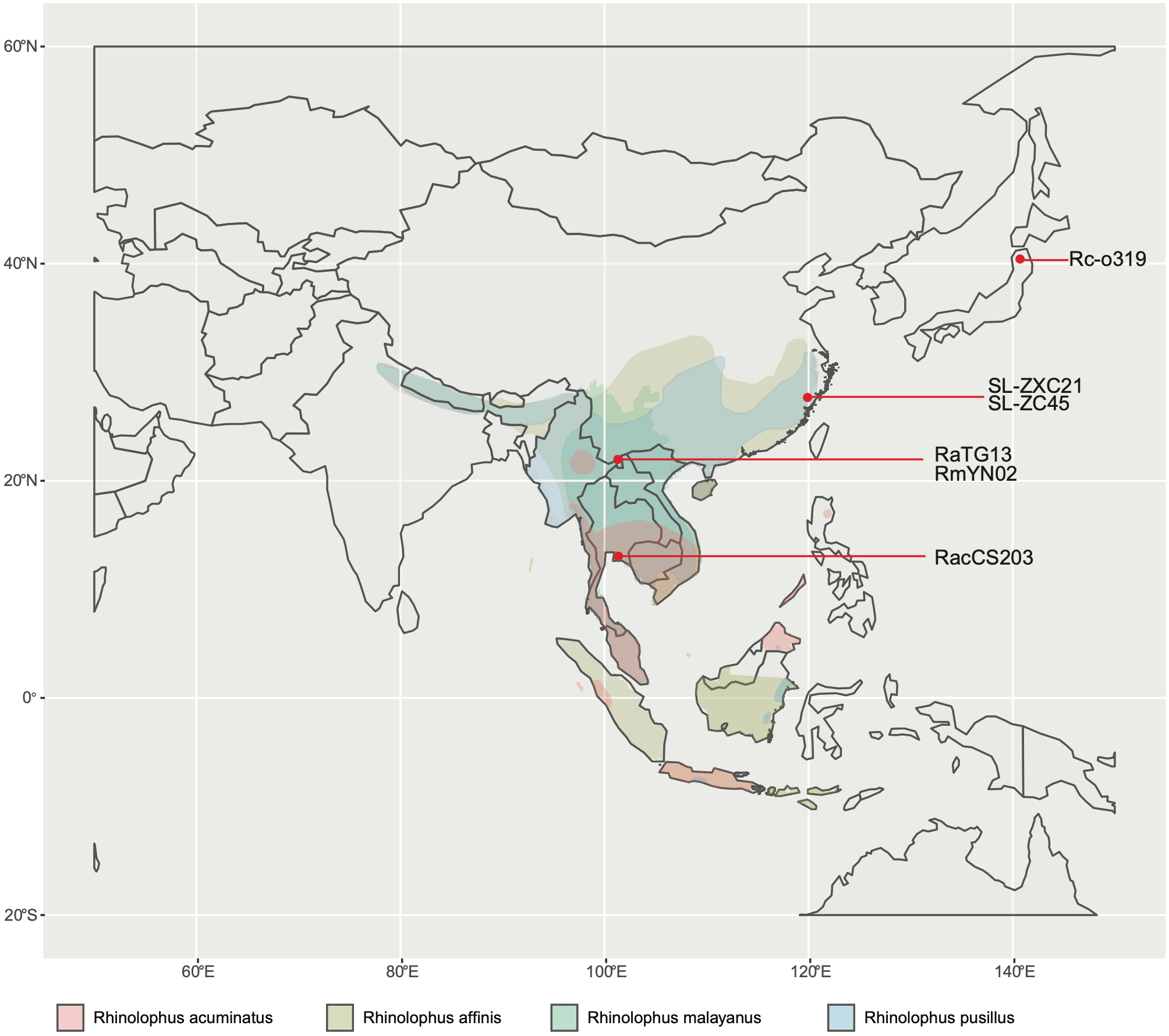 In line with WHO’s mission on investigating the origin of SARS-CoV-2, we sampled 100 Rhinolophus acuminatus bats from a Thai cave in June 2020 and discovered a bat coronavirus, named RacCS203, with 91.5% sequence identity to SARS-CoV-2, and 91.4% and 93.7% sequence identity to the bat coronaviruses RaTG13 and RmYN02 discovered in China, respectively. The RacCS203 bat coronavirus is even more similar to SARS-CoV-2 than the Rc-o319 bat coronavirus in Japan published in November 2020, which has a sequence identity of 79.2% to SARS-CoV-2. All these studies suggest that genetically diverse SARS-CoV-2-related coronaviruses are not limited to China and have a geographic distribution spanning over 4,800 kilometers, from Japan all the way to Thailand. Imagine that!