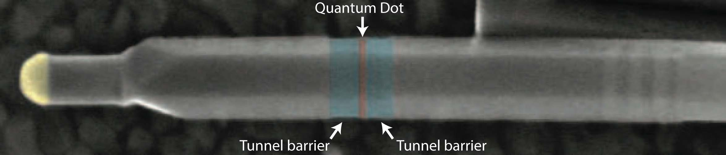 This work is the result of a strong collaboration of the Quantum- and Nanoelectronics group, led by Prof. C. Schönenberger and Dr. A. Baumgartner at the University of Basel (Switzerland), and the groups of Prof. K. A. Dick and Dr. C. Thelander at the University of Lund and the Center for Analysis and Synthesis in Lund (Sweden). Our collaborators in Lund grew the InAs nanowires with integrated quantum dots, defined by atomically sharp tunnel barriers. We fabricated the devices and carried out the measurements with colleagues in the Nanoelectronics group. Subsequently, we analyzed the data and worked on the interpretation of the data, which in addition were very nicely reproduced in a tight-binding model by Dr. D. Chevallier from the Condensed Matter Theory group at the University of Basel.