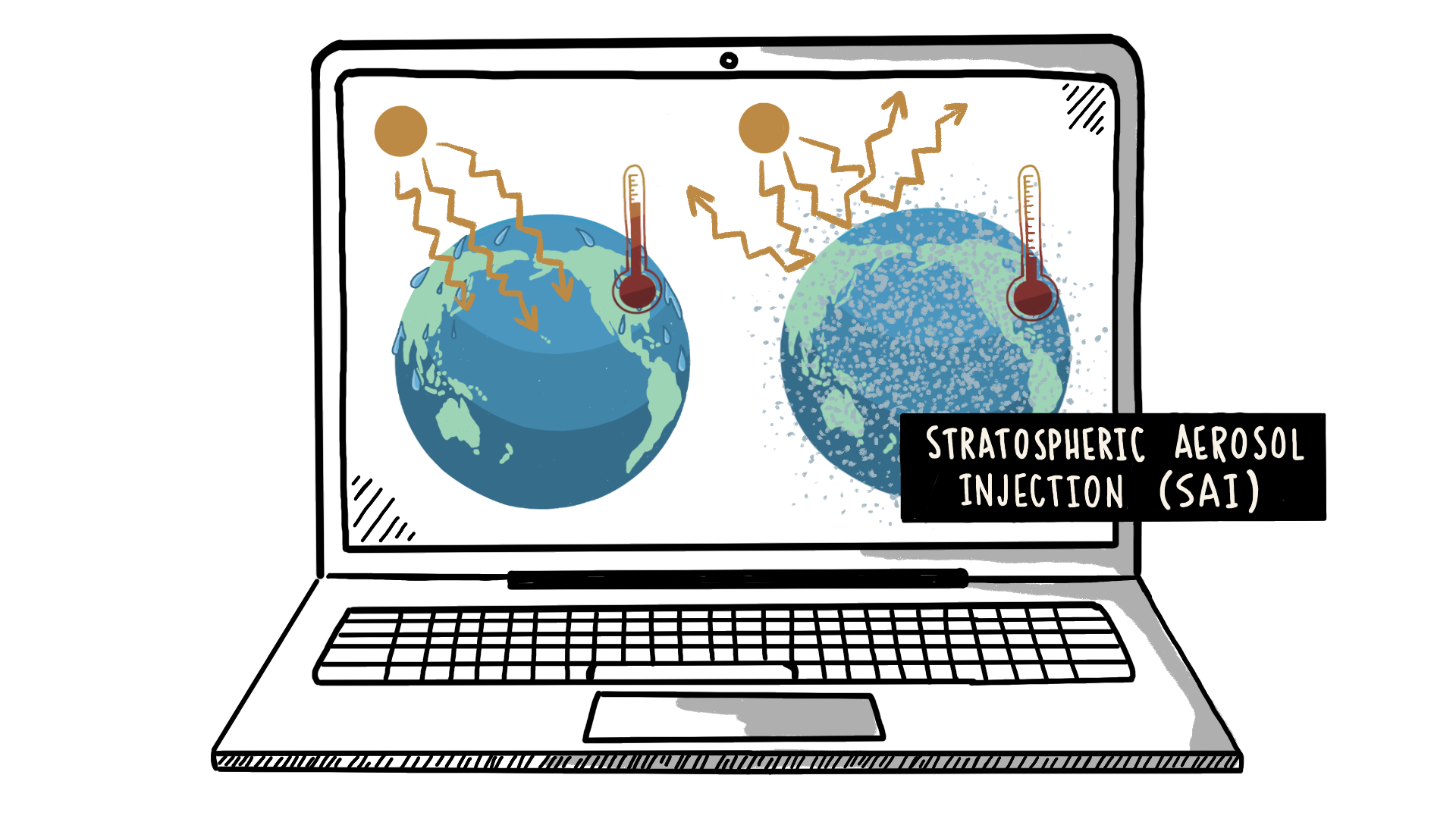 One specific hypothetical intervention is stratospheric aerosol injection (SAI), where reflective particles would be placed into the upper atmosphere to reflect a small portion of sunlight away from Earth’s surface to limit warming or cool the planet. SAI is viable with near-future technology, and could act quickly – in an aggressive intervention scenario, it could be used to reduce temperatures within a few years after deployment.