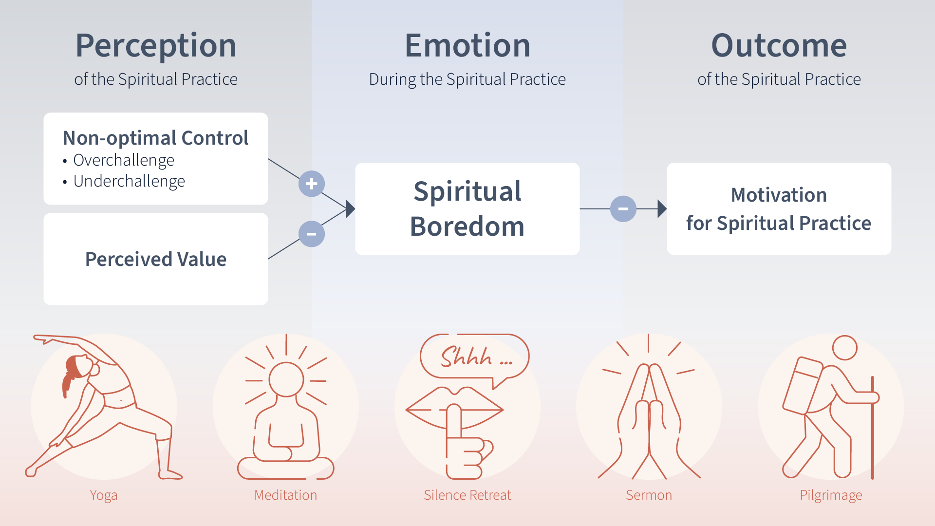- Our results show that the central triggers of spiritual boredom are in fact the feeling of being over-challenged or under-challenged as well as a lack of personal relevance for those practising the spiritual activity.