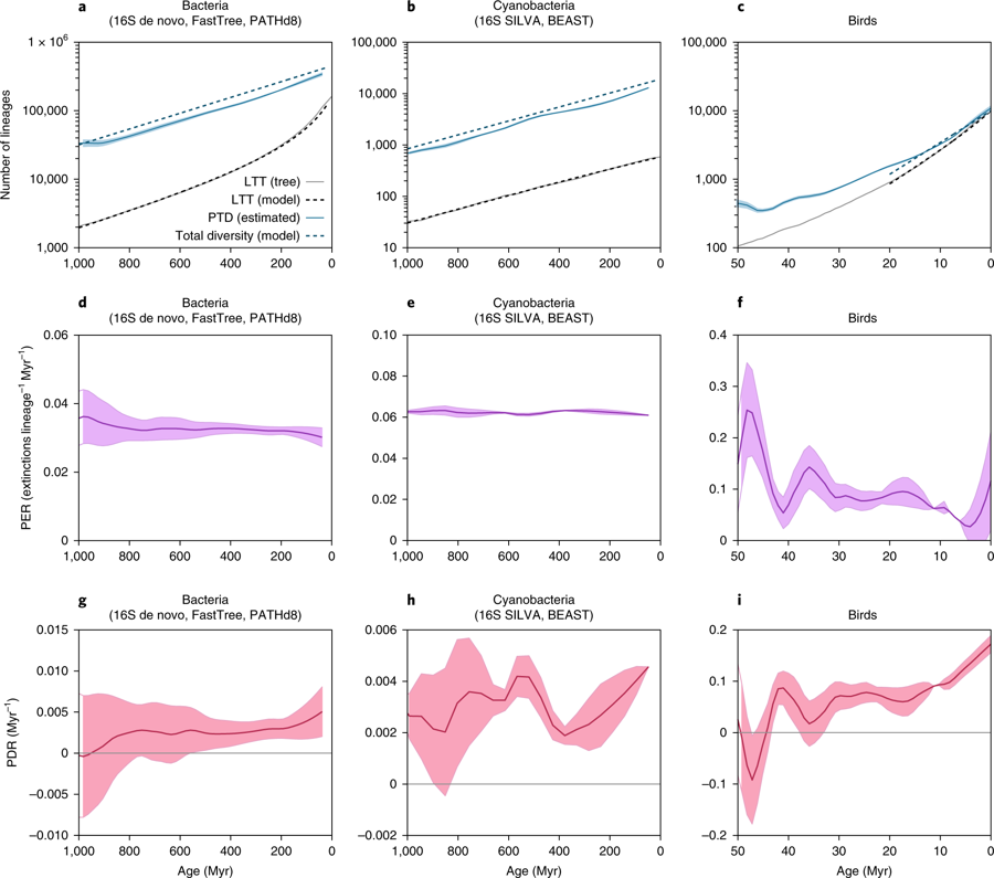 Reconstructing bacterial diversity dynamics from phylogenies, the authors estimate that there are about 1.4–1.9 million extant bacterial lineages and that diversity has been continuously increasing over the past 1 billion years, although most lineages to have inhabited Earth are now extinct.