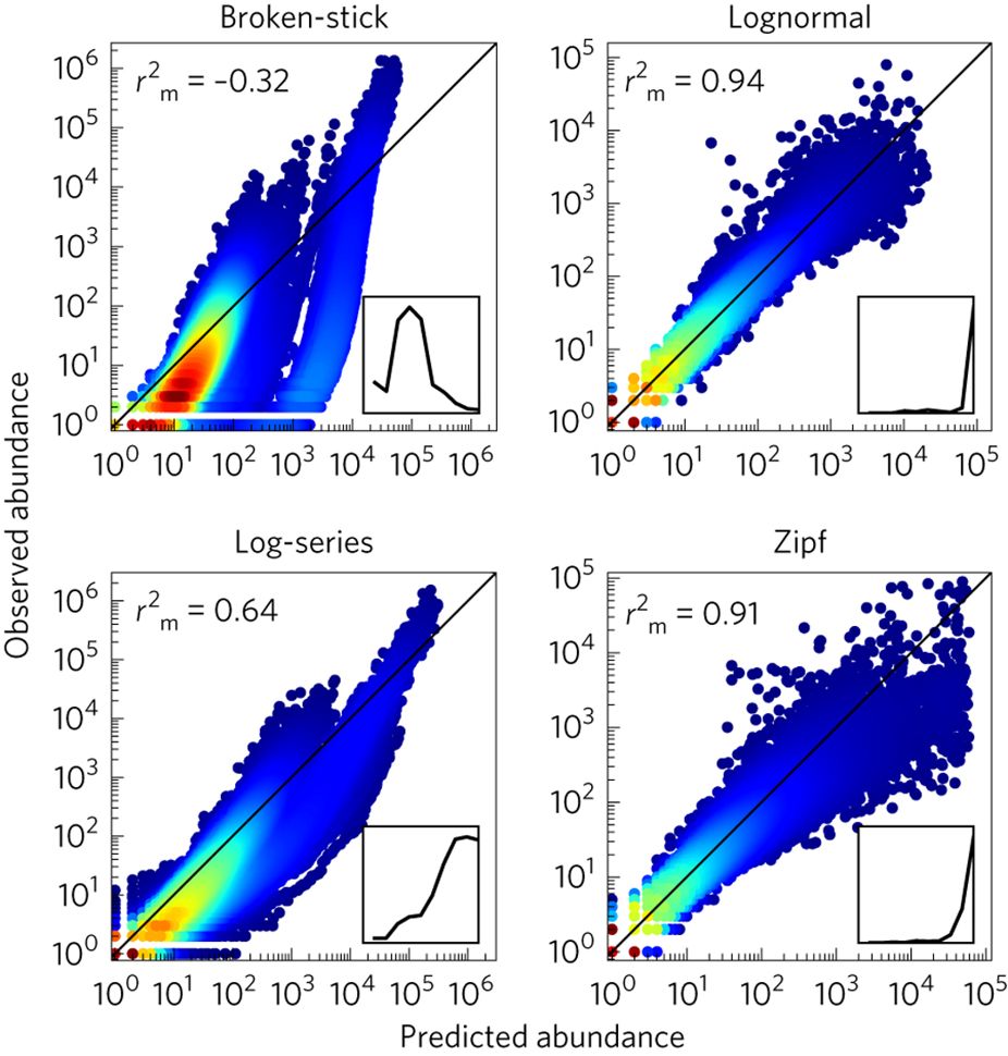 Testing widely known biodiversity models on a dataset of >20,000 microbial community samples from a wide variety of ecosystems, Shoemaker et al find that microbial abundance and diversity across scales is best predicted by a model of lognormal dynamics