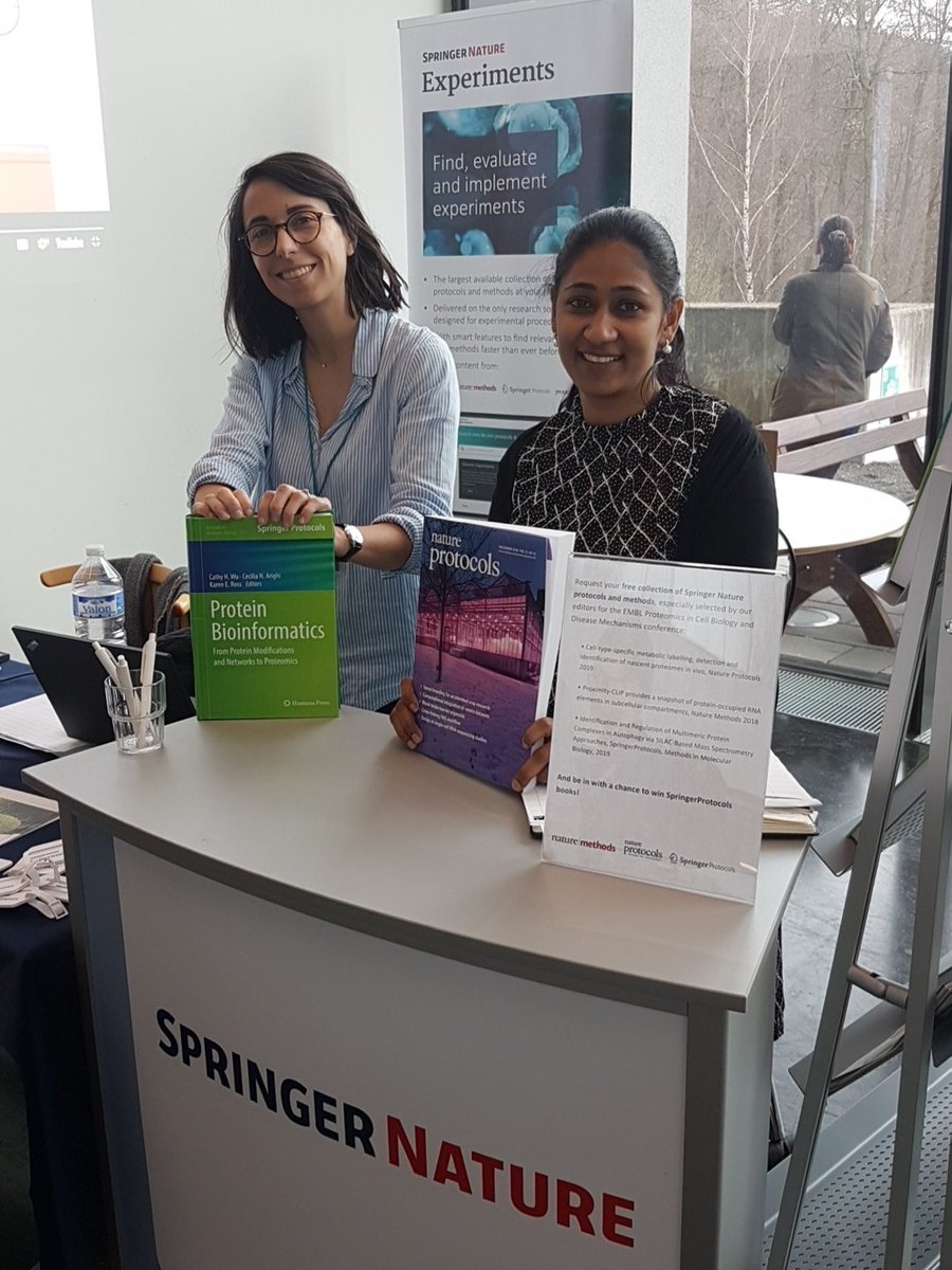 Day one was a very hectic but eventful. During the next two days, we spent more time at the booth and we had a great time interacting with the researchers. A few researchers checked out the platform and came back to us with some suggestions and even a wish list for the future. We had prize drawing where some lucky winners took home selected Springer books and Nature journals. The attendees showed a lot of enthusiasm and actively participated in the draw and by the last day all our books and journals were taken away. We asked our editor colleague Gonzalo Córdova to select two best posters and we gifted these winners with our Springer books: Proteomics: Methods and Protocols and Serum/Plasma Proteomics.