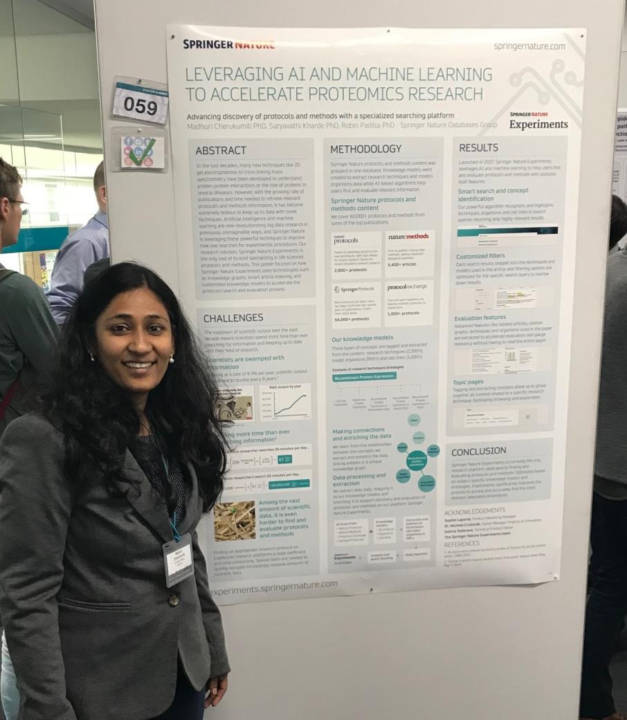 My first event of the day was the late morning pre-conference workshop scheduled for Springer Nature. In my workshop, I focused on Springer Nature Experiments and how its unique features and technologies such as knowledge graphs, smart article indexing, and customized knowledge models support proteomics research and more. The number of attendees was around 30. The participants were impressed with the platform, which I could also see later with the traffic at the booth and the number of participants requesting demos and asking for more information. I gathered a lot of constructive feedback about the product. One of our Springer Books editors Gonzalo Córdova (Medicine and Life Sciences - Books) in the research publishing division also attended the event.