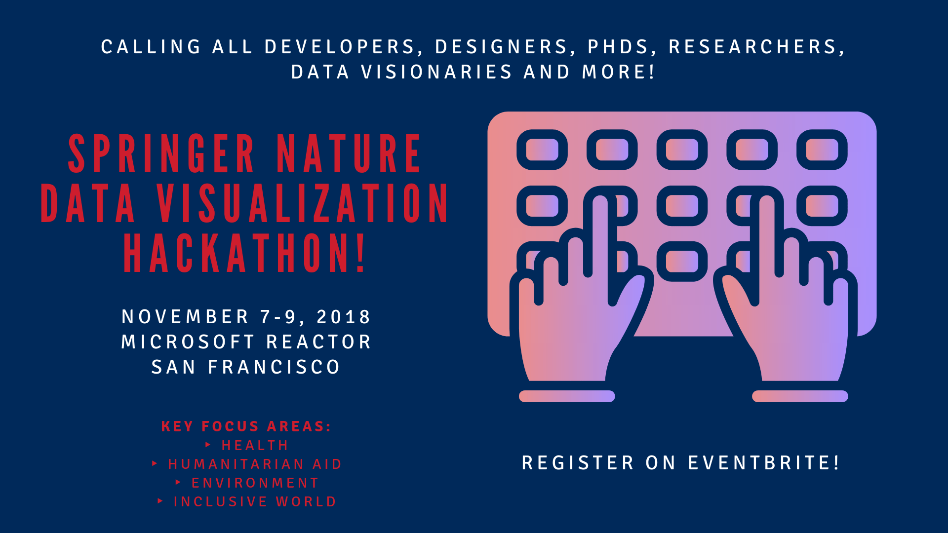 Join us at the Microsoft Reactor in San Francisco from November 7-9 for an opportunity to build new and innovative mixed reality applications using Springer Nature’s data and research publications.