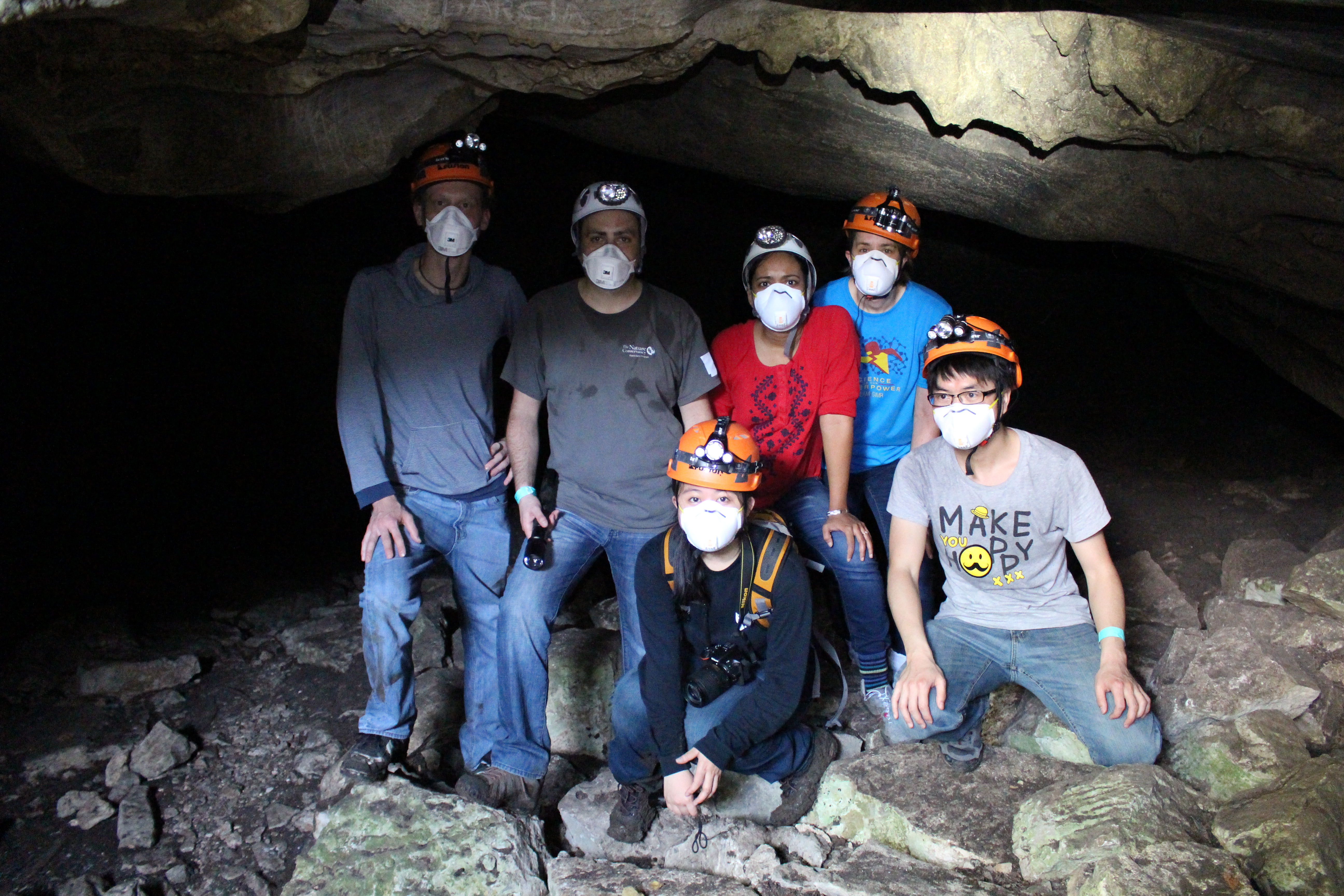 Figure 3: The Rohner Lab in the field. The Pachón cave in March of 2017. From left to right: Robert Peuß, Nicolas Rohner, Jenny Sung, Jaya Krishnan, Karin Zueckert-Gaudenz, Shaolei Xiong.