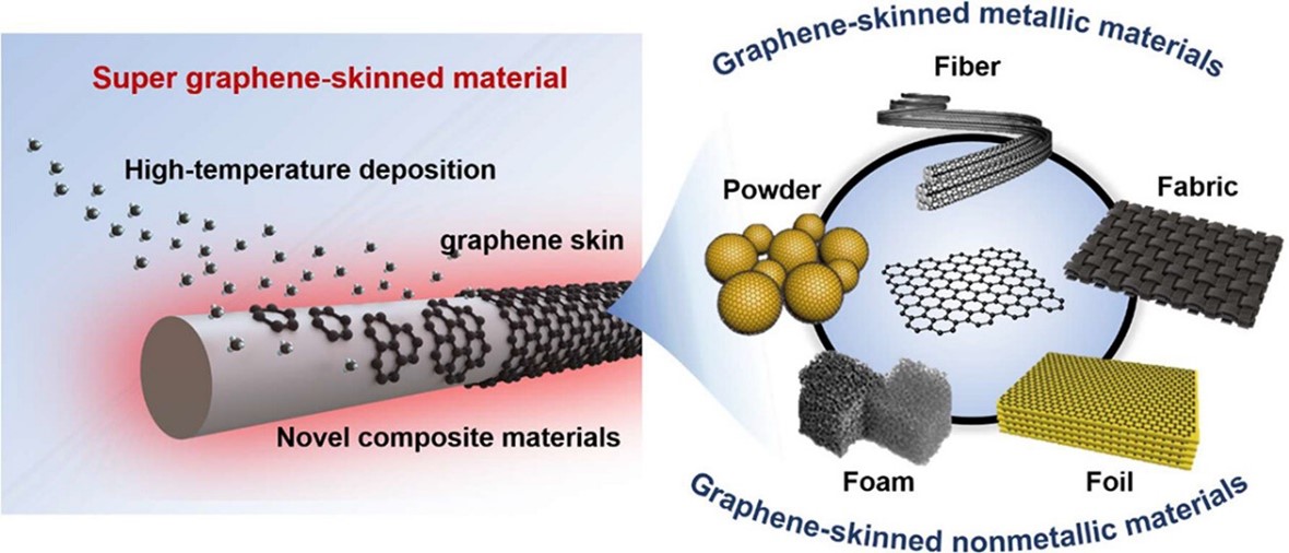 “Super graphene-skinned materials” is an innovative strategy toward graphene practical applications, which will inspire more approaches to achieve the translation of graphene's exceptional properties from atomic-scale structures to macroscopic bulk materials.