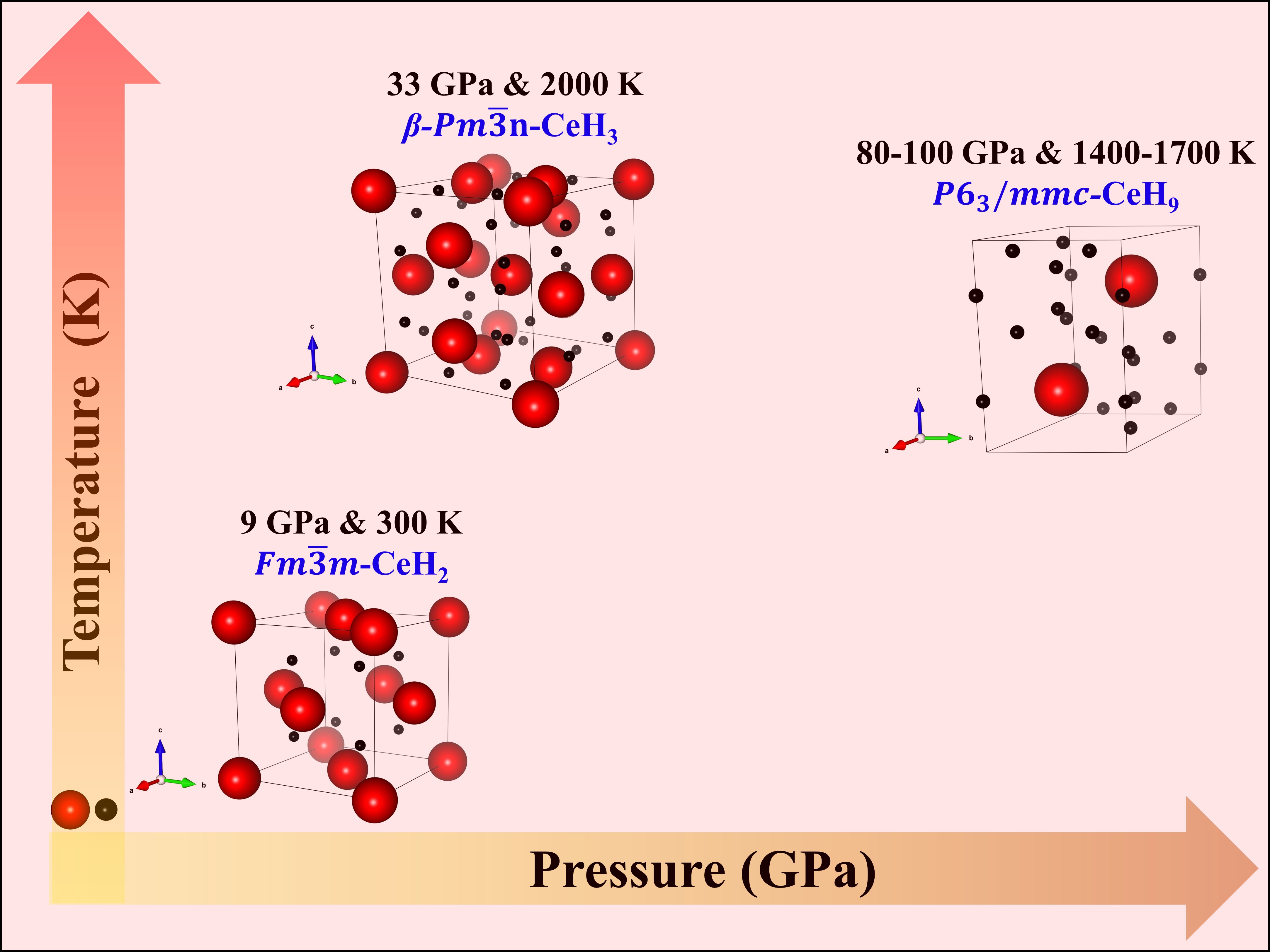 Figure 1: Synthesis conditions of various cerium hydride phases. Red and black symbols represent cerium and hydrogen atoms respectively.